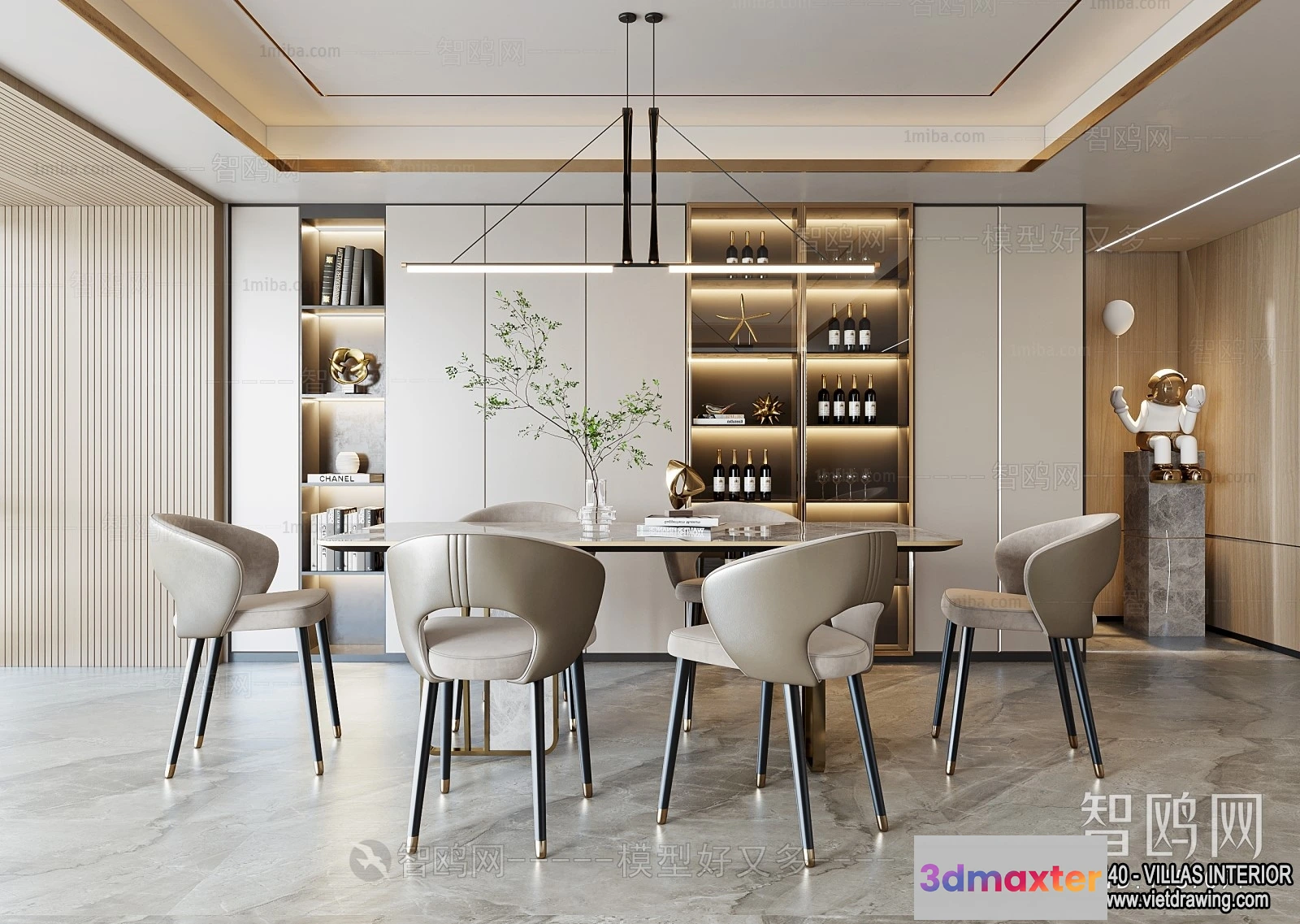 3D Models / 3D Scenes / Interior / Dining Room / Dining Room – Villas 3D Interior Scene – 3D Models – 131 3D Max