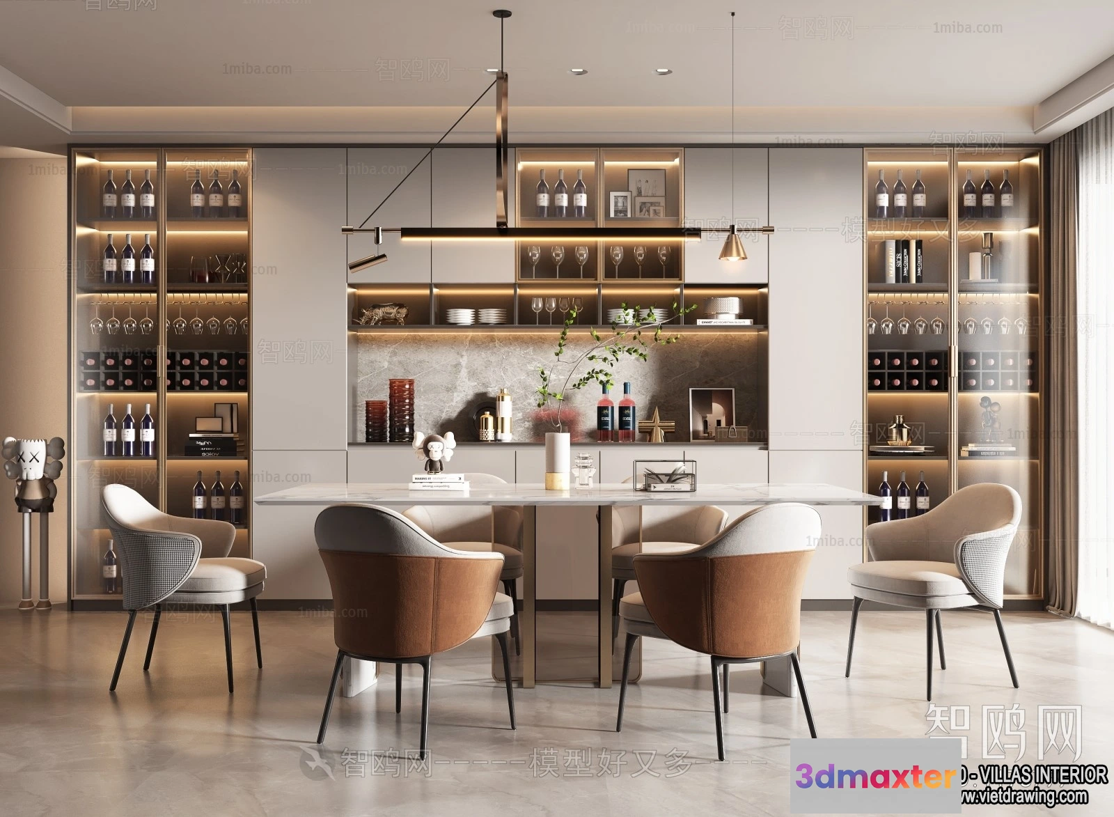 3D Models / 3D Scenes / Interior / Dining Room / Dining Room – Villas 3D Interior Scene – 3D Models – 138 3D Max