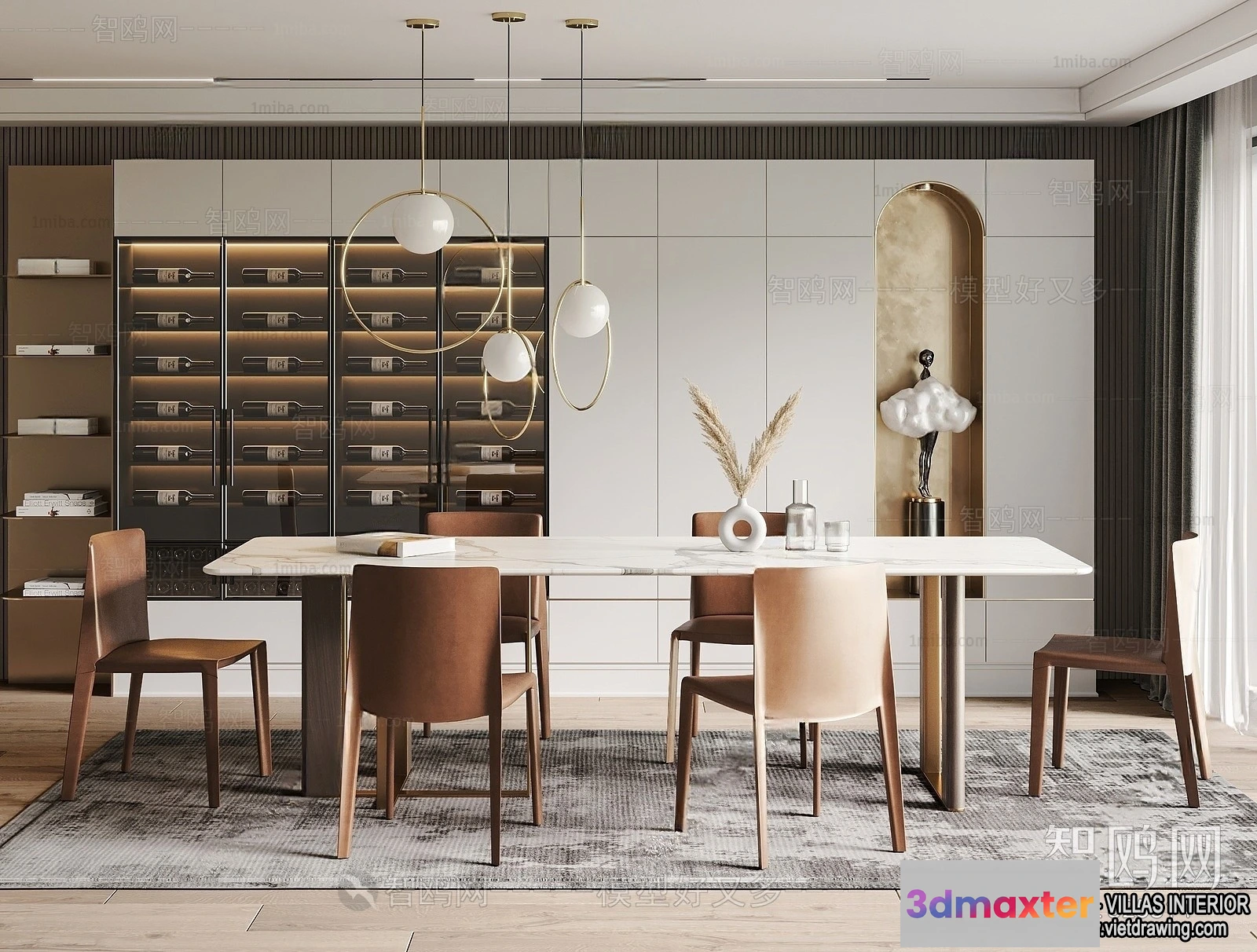 3D Models / 3D Scenes / Interior / Dining Room / Dining Room – Villas 3D Interior Scene – 3D Models – 155 3D Max
