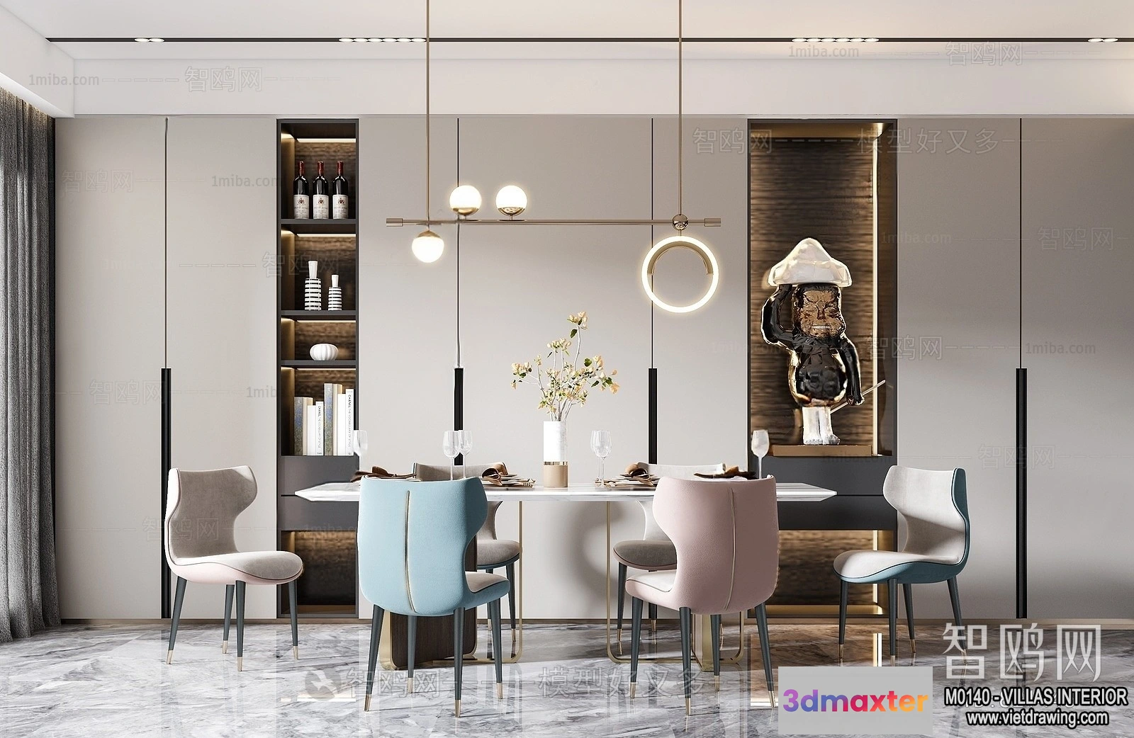 3D Models / 3D Scenes / Interior / Dining Room / Dining Room – Villas 3D Interior Scene – 3D Models – 156 3D Max