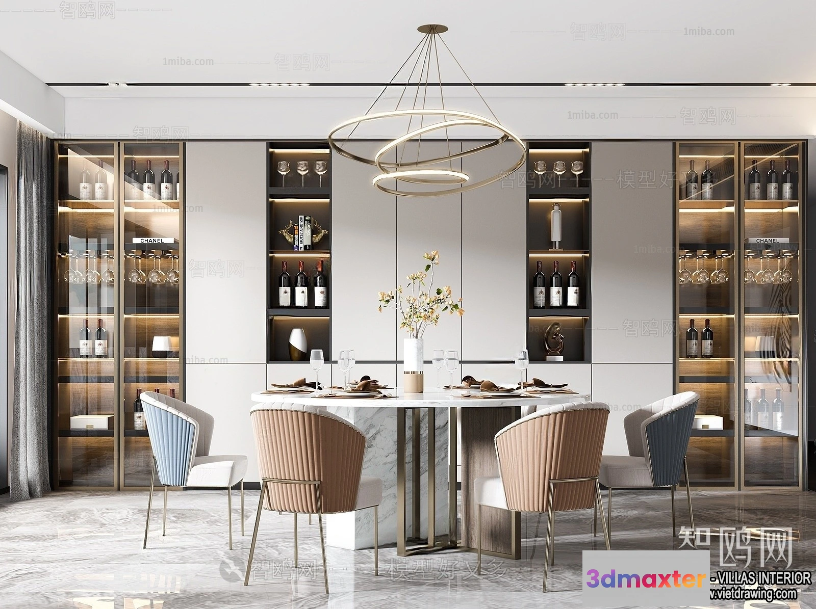3D Models / 3D Scenes / Interior / Dining Room / Dining Room – Villas 3D Interior Scene – 3D Models – 163 3D Max