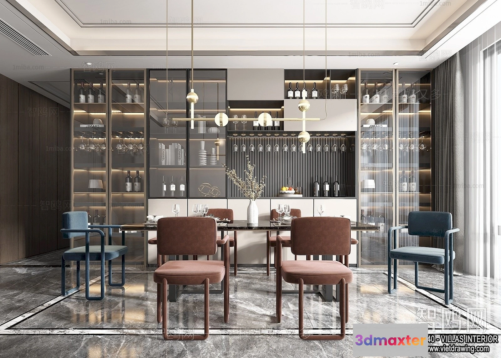 3D Models / 3D Scenes / Interior / Dining Room / Dining Room – Villas 3D Interior Scene – 3D Models – 164 3D Max