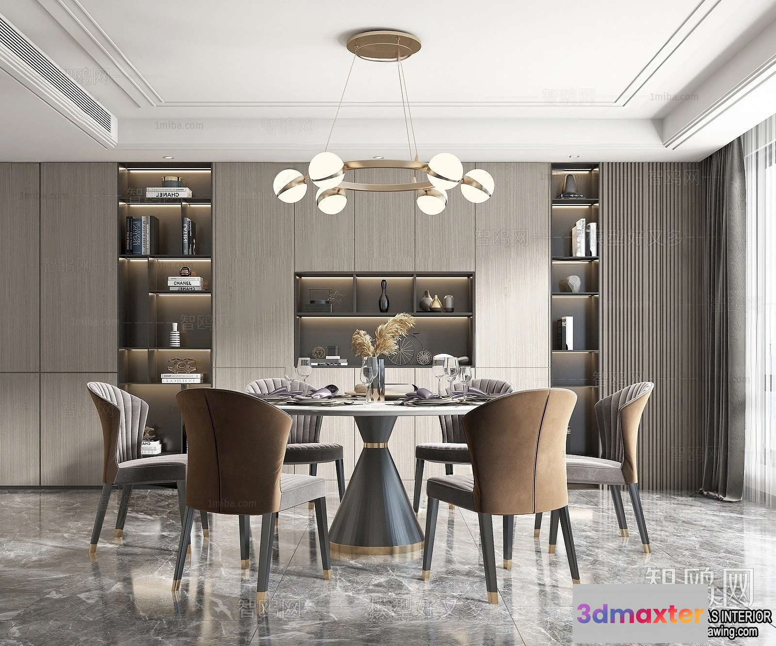 3D Models / 3D Scenes / Interior / Dining Room / Dining Room – Villas 3D Interior Scene – 3D Models – 165 3D Max