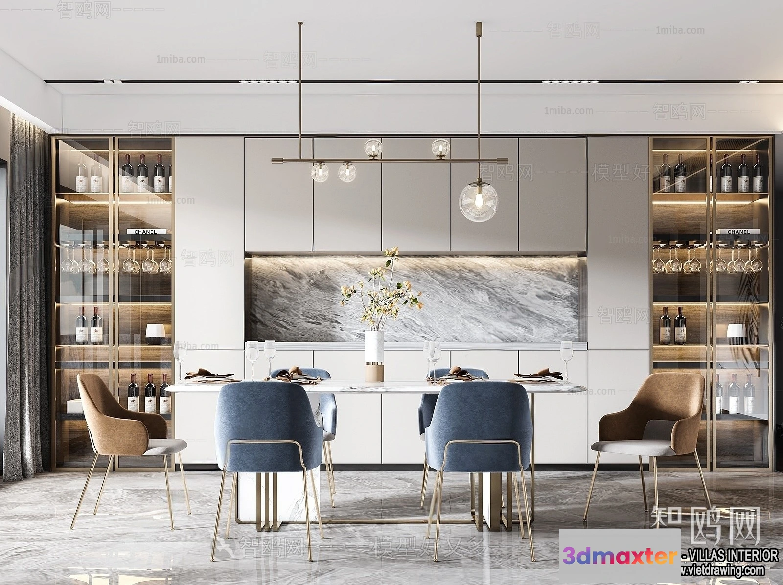 3D Models / 3D Scenes / Interior / Dining Room / Dining Room – Villas 3D Interior Scene – 3D Models – 166 3D Max