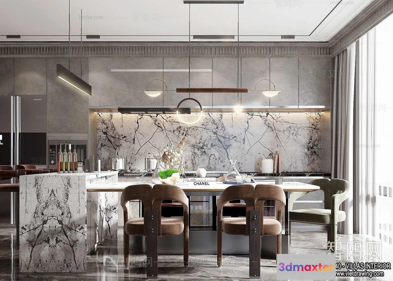 3D Models / 3D Scenes / Interior / Dining Room / Dining Room – Villas 3D Interior Scene – 3D Models – 168 3D Max