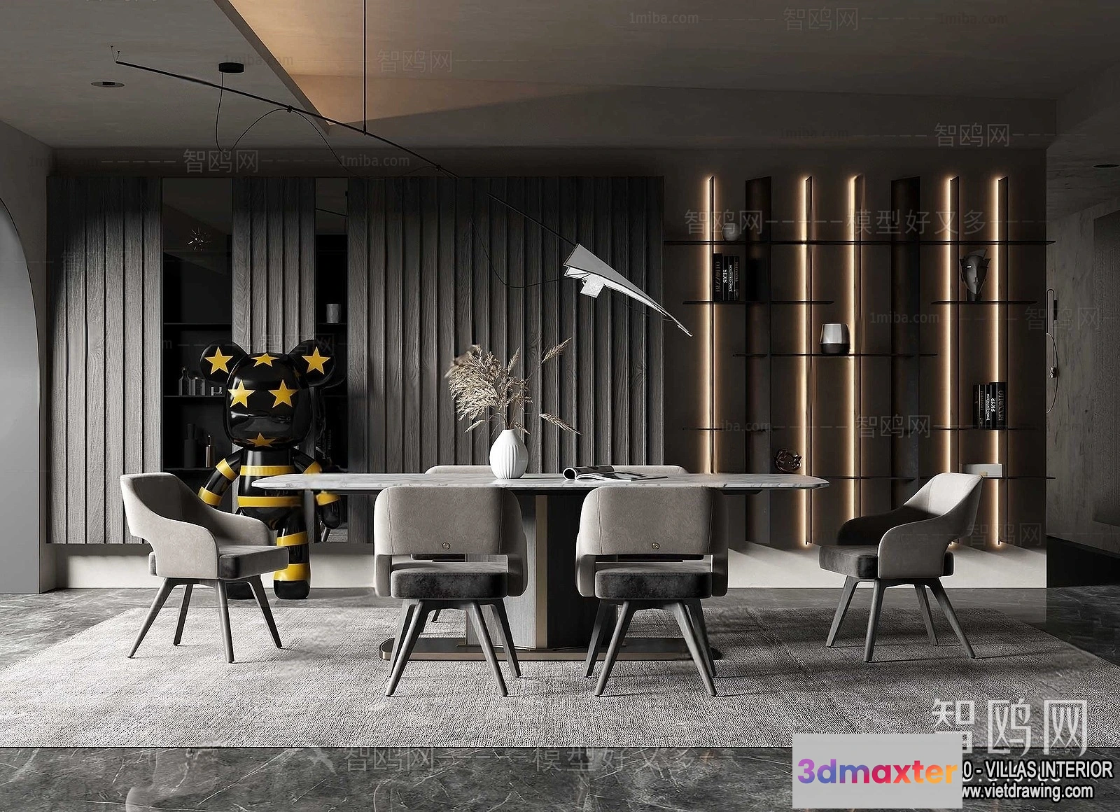- Name: Dining Room – Villas 3D Interior Scene – 3D Models – 170