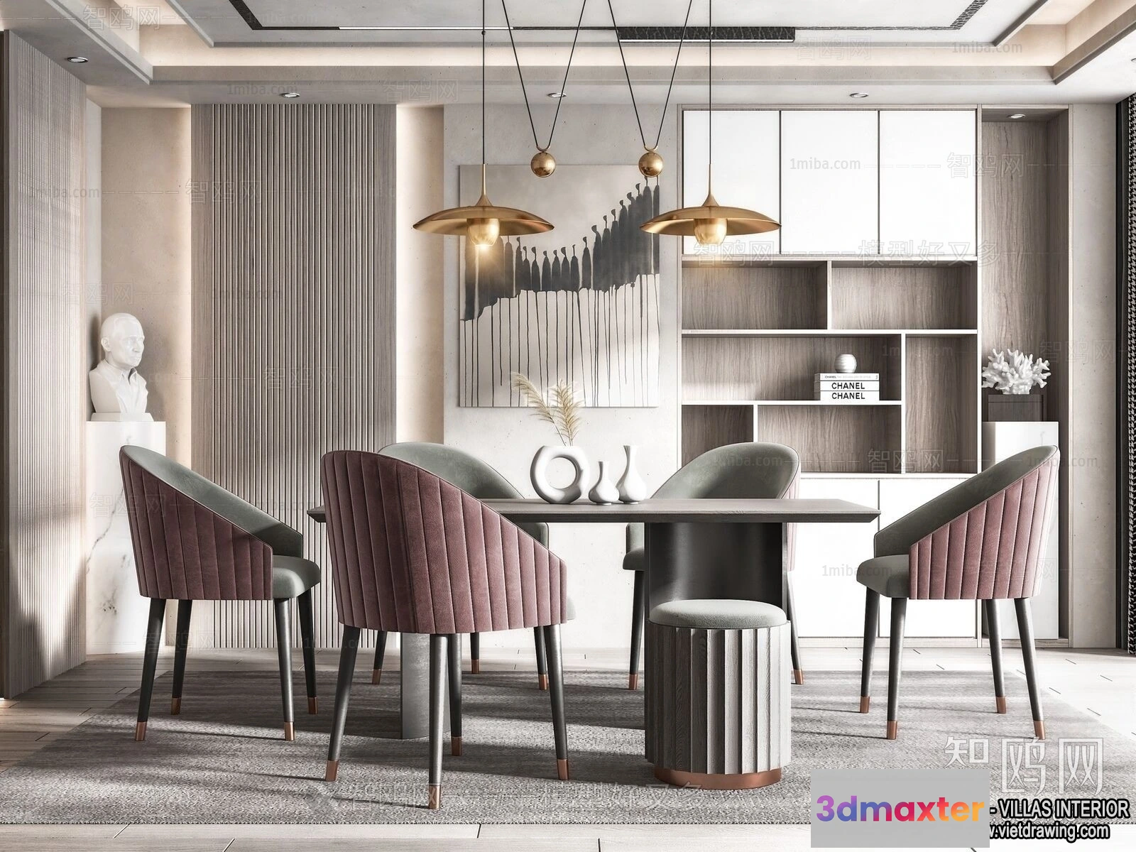 3D Models / 3D Scenes / Interior / Dining Room / Dining Room – Villas 3D Interior Scene – 3D Models – 181 3D Max