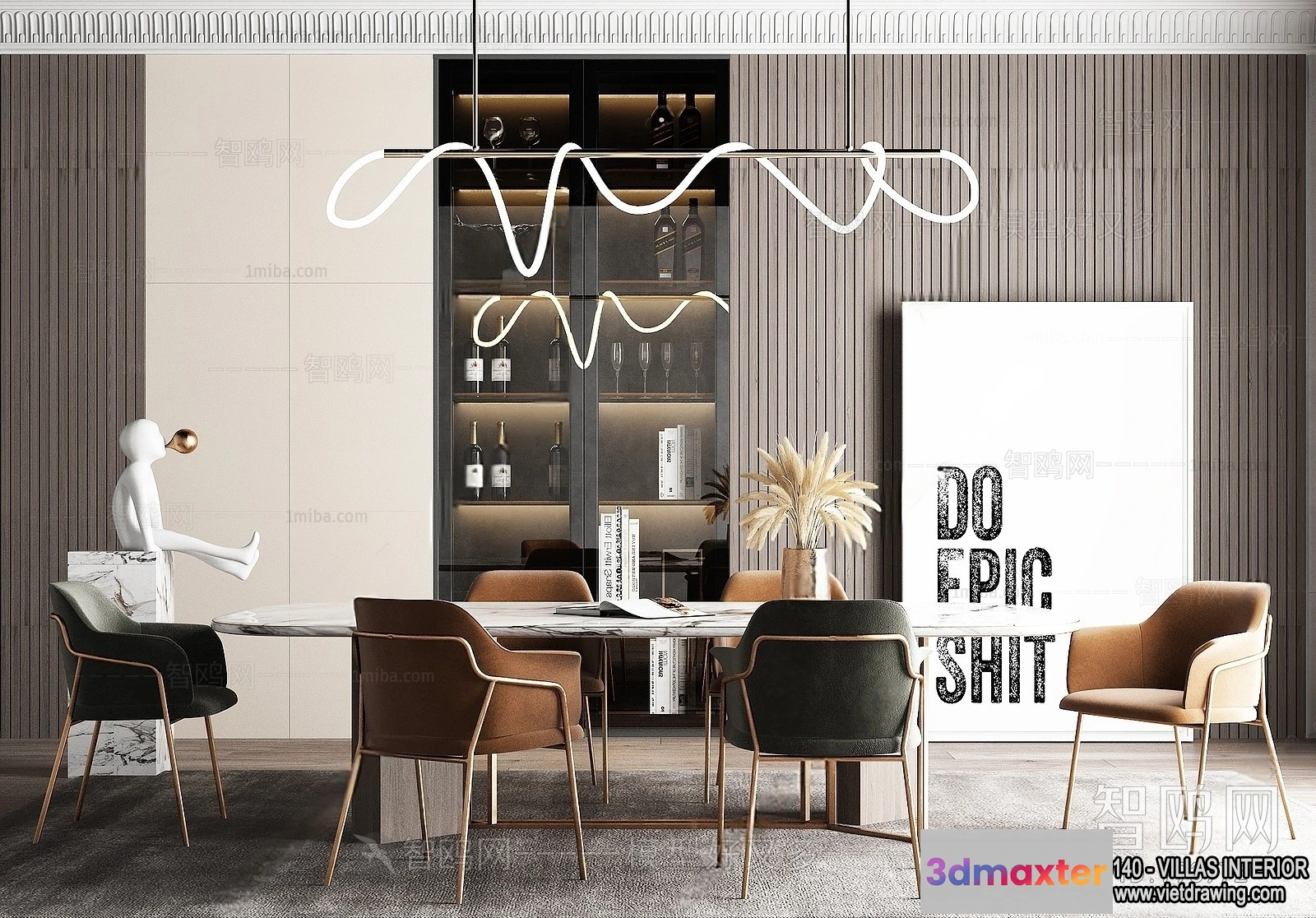 3D Models / 3D Scenes / Interior / Dining Room / Dining Room – Villas 3D Interior Scene – 3D Models – 187 3D Max