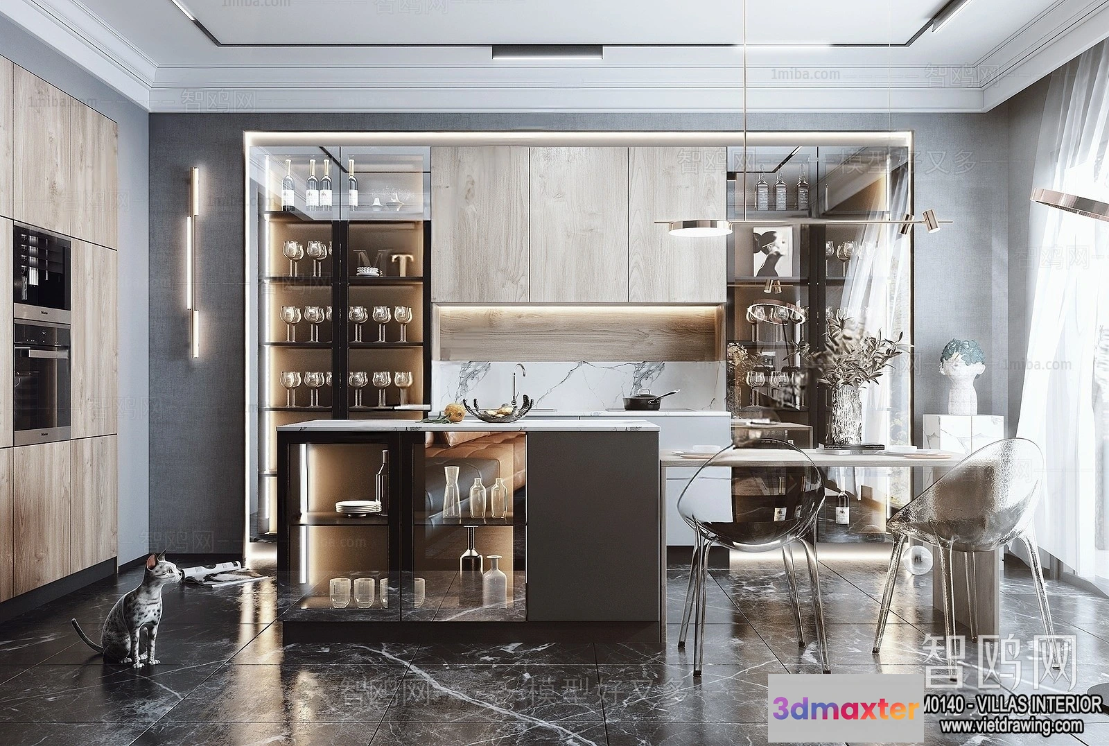 3D Models / 3D Scenes / Interior / Dining Room / Dining Room – Villas 3D Interior Scene – 3D Models – 194 3D Max