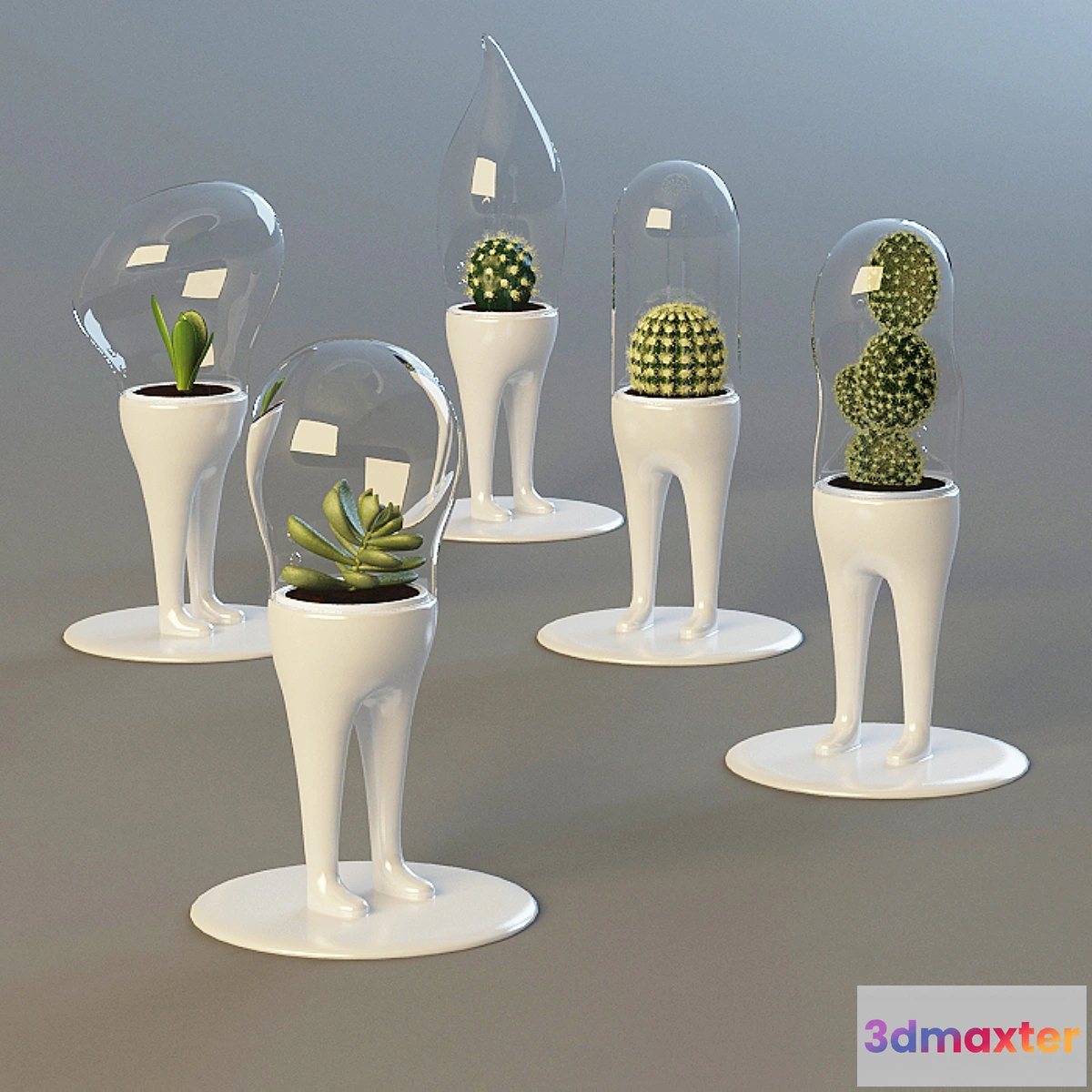 Domsai – life in a glass case. Domsai or home bonsai -new entry from the Italian house designers Monotono. Innovation is a small plant under a glass dome on the little feet. In the middle of such plants may live: all kinds of cacti succulents dracaena and others. Domsai can dispel the gloomy situation on the office desk make a unique gift. Height: 25/28 cm Width: 14 cm Diameter: 14 cm in OBJ files removed iteration.