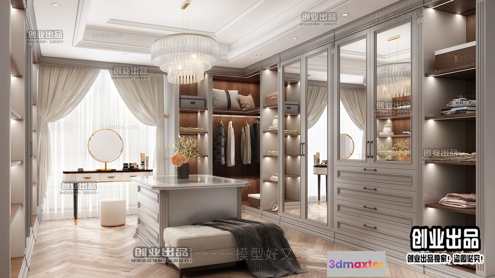 Dressing Room 3D Interior Scene – European Style – 039 3D Max