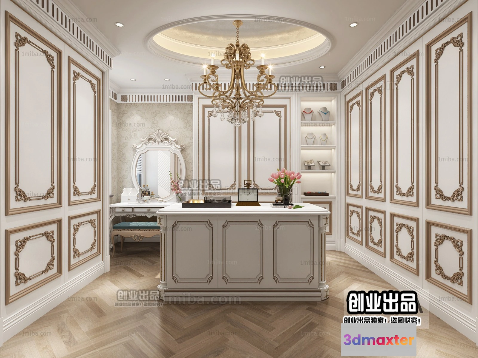 Dressing Room 3D Interior Scene – European Style – 041 3D Max