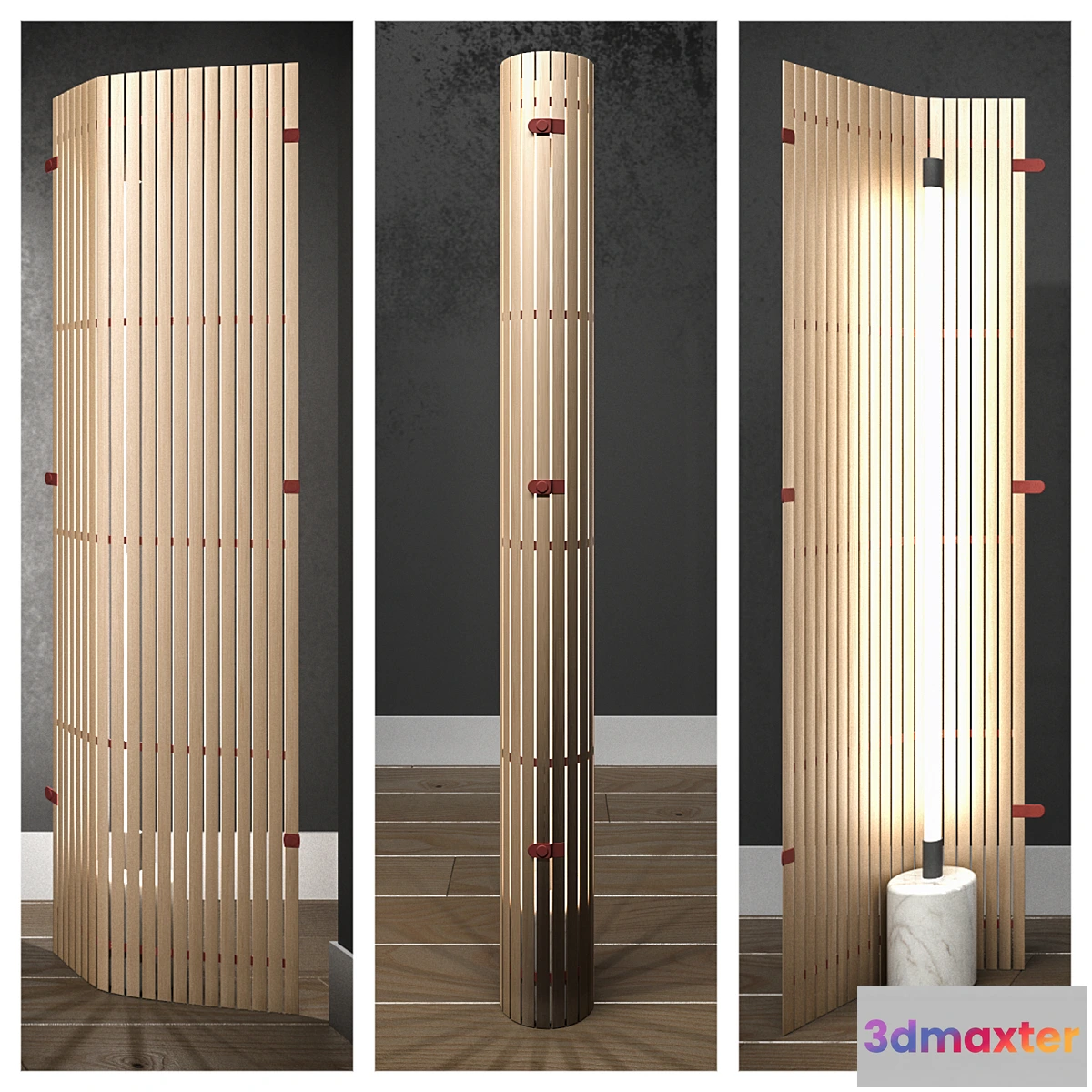 A floor cylindrical lamp from the Ligne Roset factory. The cylinder can be partially opened as a screen thus creating a number of different lighting scenarios.