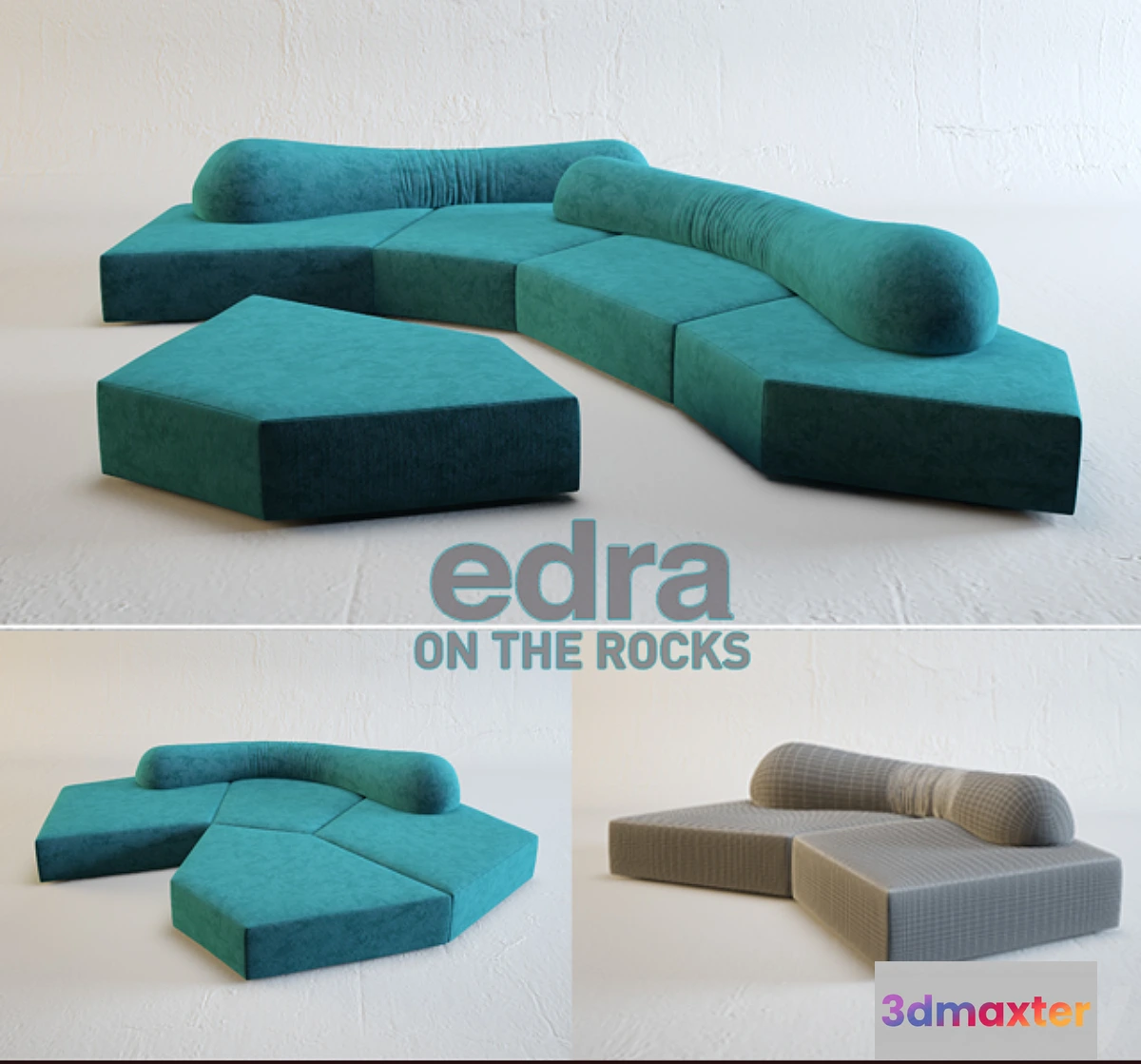 Modular sofa. May meet in different configurations thanks to individual items. Back of a single element freely lying on the couch. Stack and TurboSmooth Bend not collapsed.