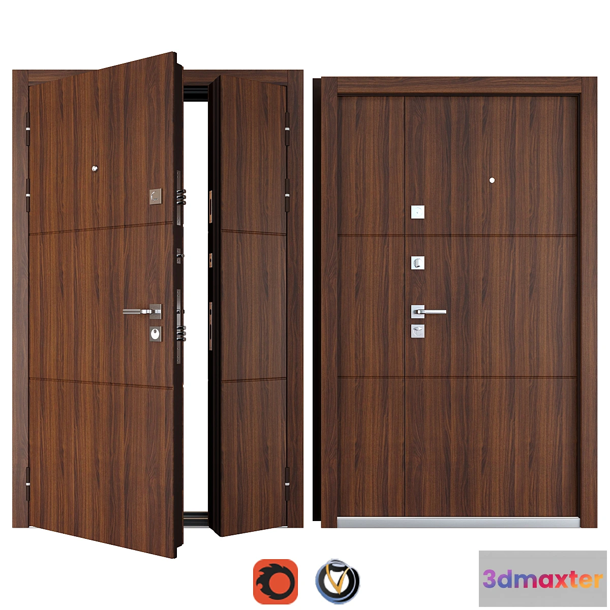 The archive contains a library of CoronaRenderer and V-ray materials fbx and obj files.