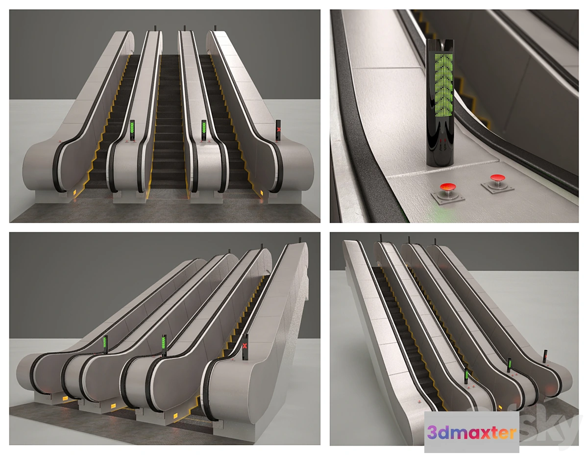 Escalator of this type is designed to work in the subway. Has three stairs. The object is not solid and is divided into structural elements so maybe the division into separate sections. Enjoy using