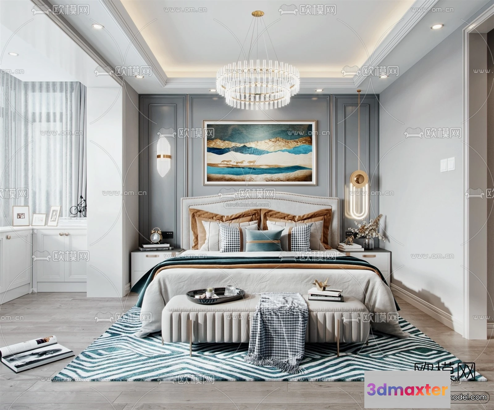 Europe Style Interior 3D Blocks – Bedroom 3D Model – 222 – Bedroom 3D Model – VRAY
