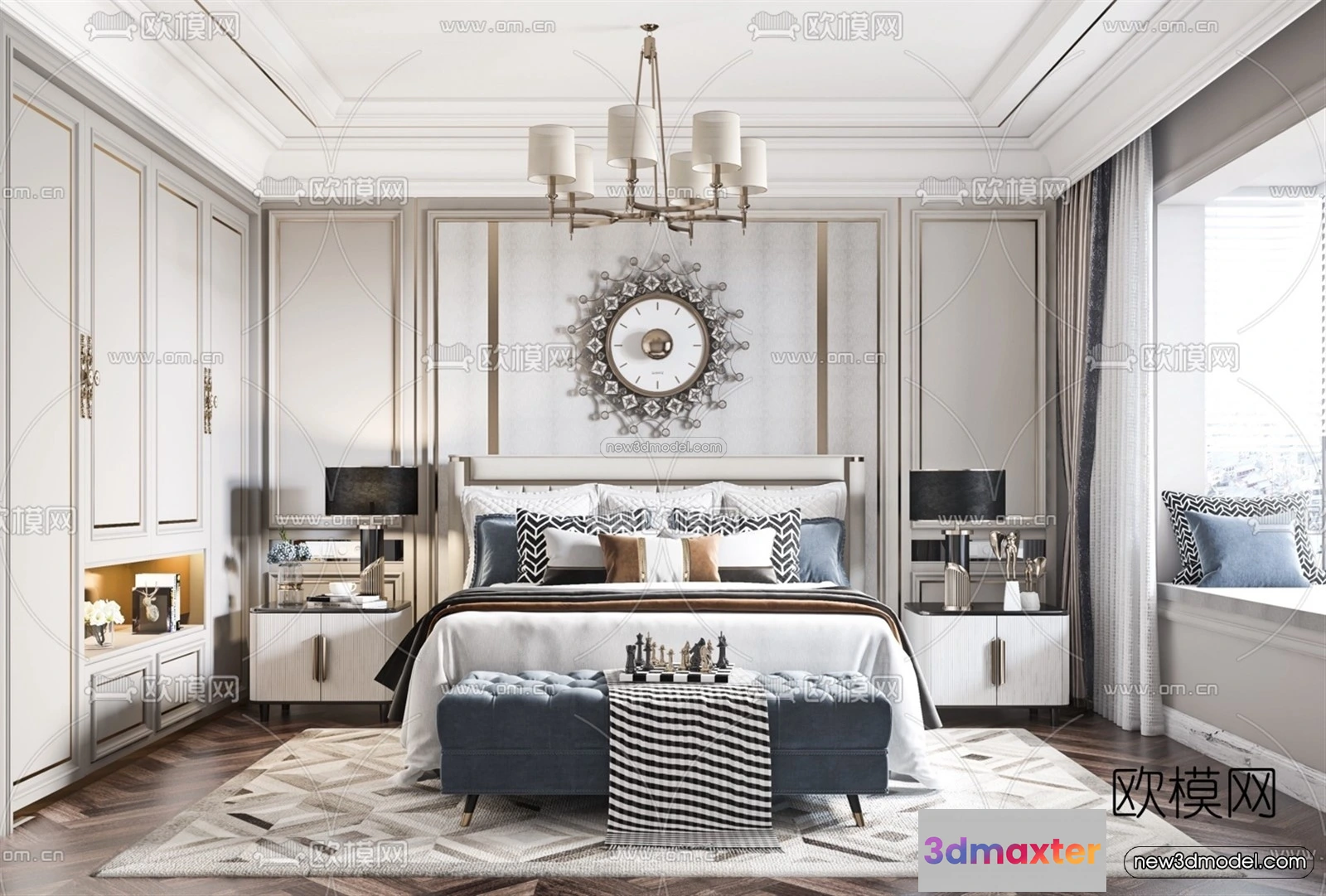 Europe Style Interior 3D Blocks – Bedroom 3D Model – 223 – Bedroom 3D Model – VRAY