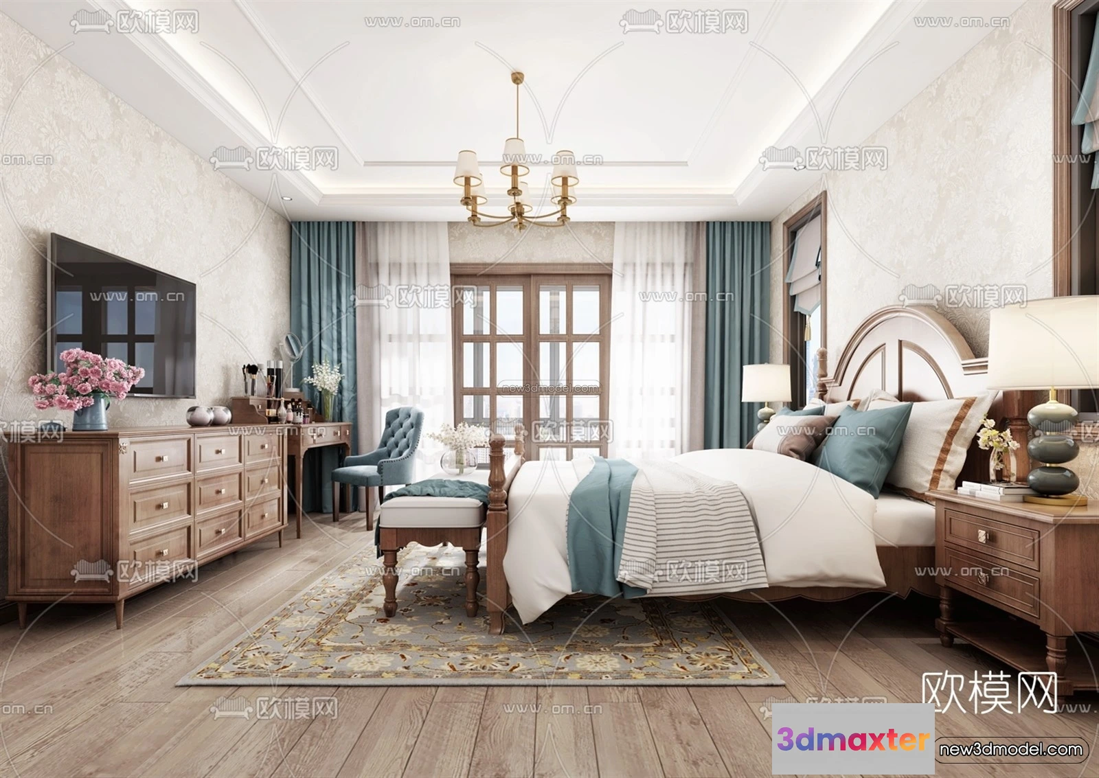 Europe Style Interior 3D Blocks – Bedroom 3D Model – 232 – Bedroom 3D Model – VRAY