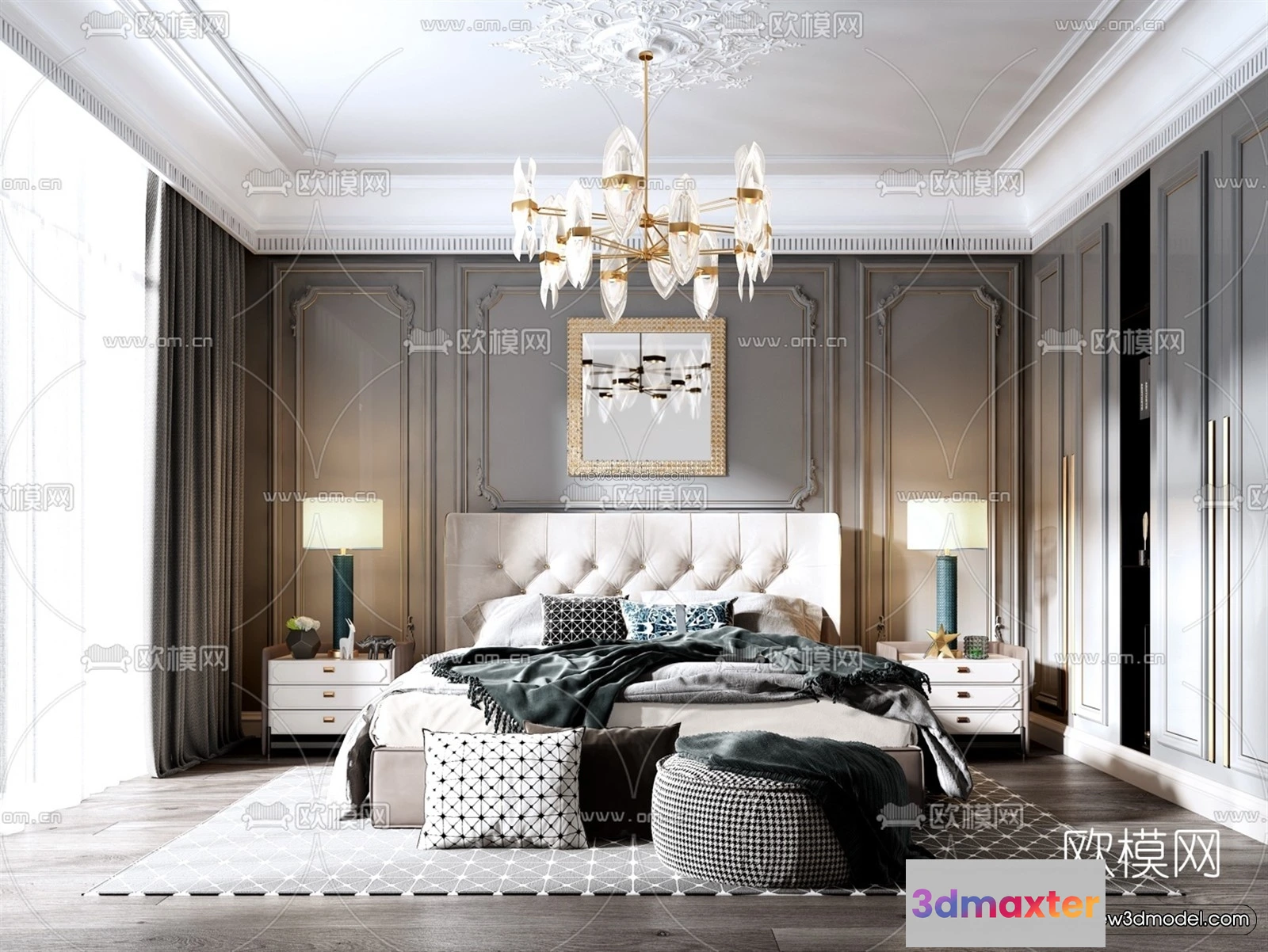 Europe Style Interior 3D Blocks – Bedroom 3D Model – 240 – Bedroom 3D Model – VRAY