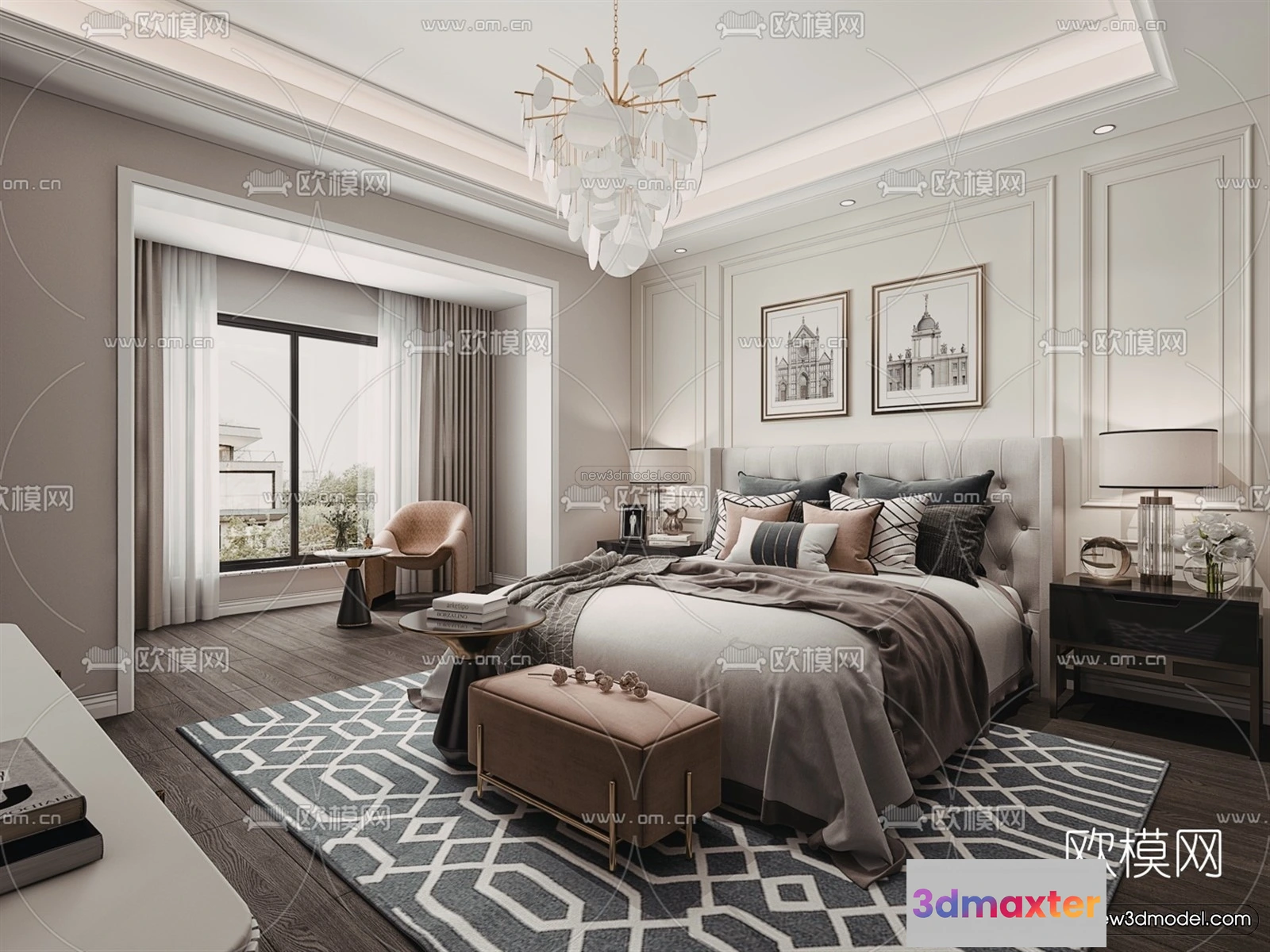 Europe Style Interior 3D Blocks – Bedroom 3D Model – 261 – Bedroom 3D Model – VRAY