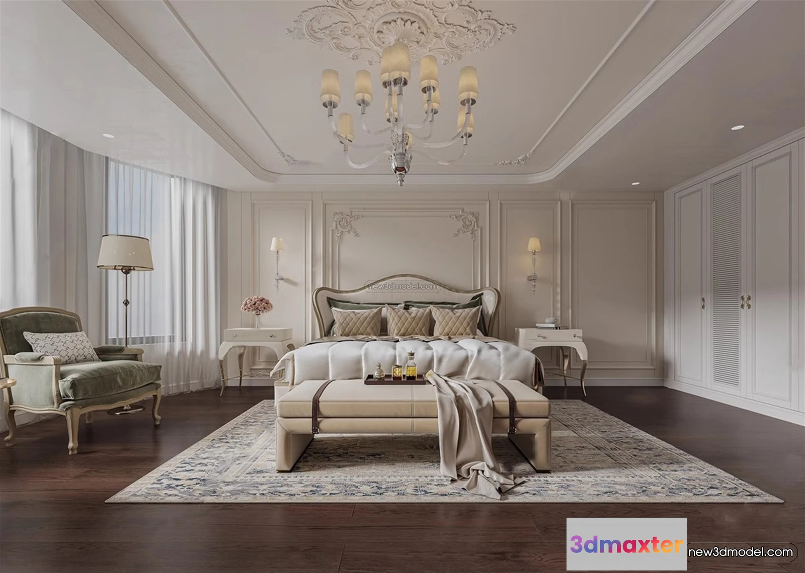 Europe Style Interior 3D Blocks – Bedroom 3D Model – 278 – Bedroom 3D Model – VRAY