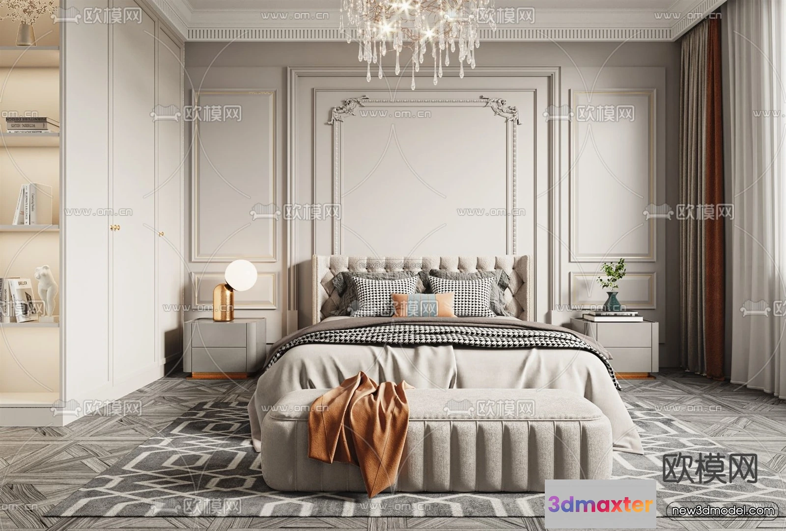 Europe Style Interior 3D Blocks – Bedroom 3D Model – 285 – Bedroom 3D Model – VRAY