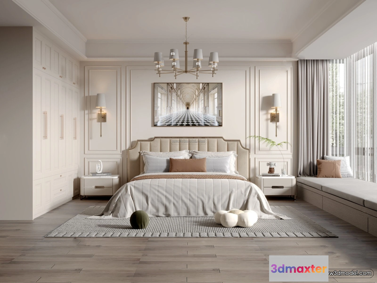 Europe Style Interior 3D Blocks – Bedroom 3D Model – 287 – Bedroom 3D Model – VRAY