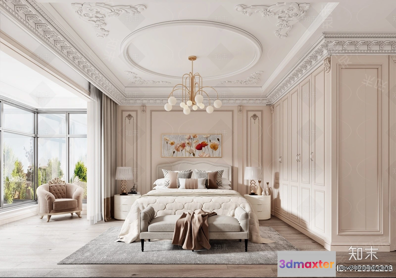 Europe Style Interior 3D Blocks – Bedroom 3D Model – 291 – Bedroom 3D Model – VRAY