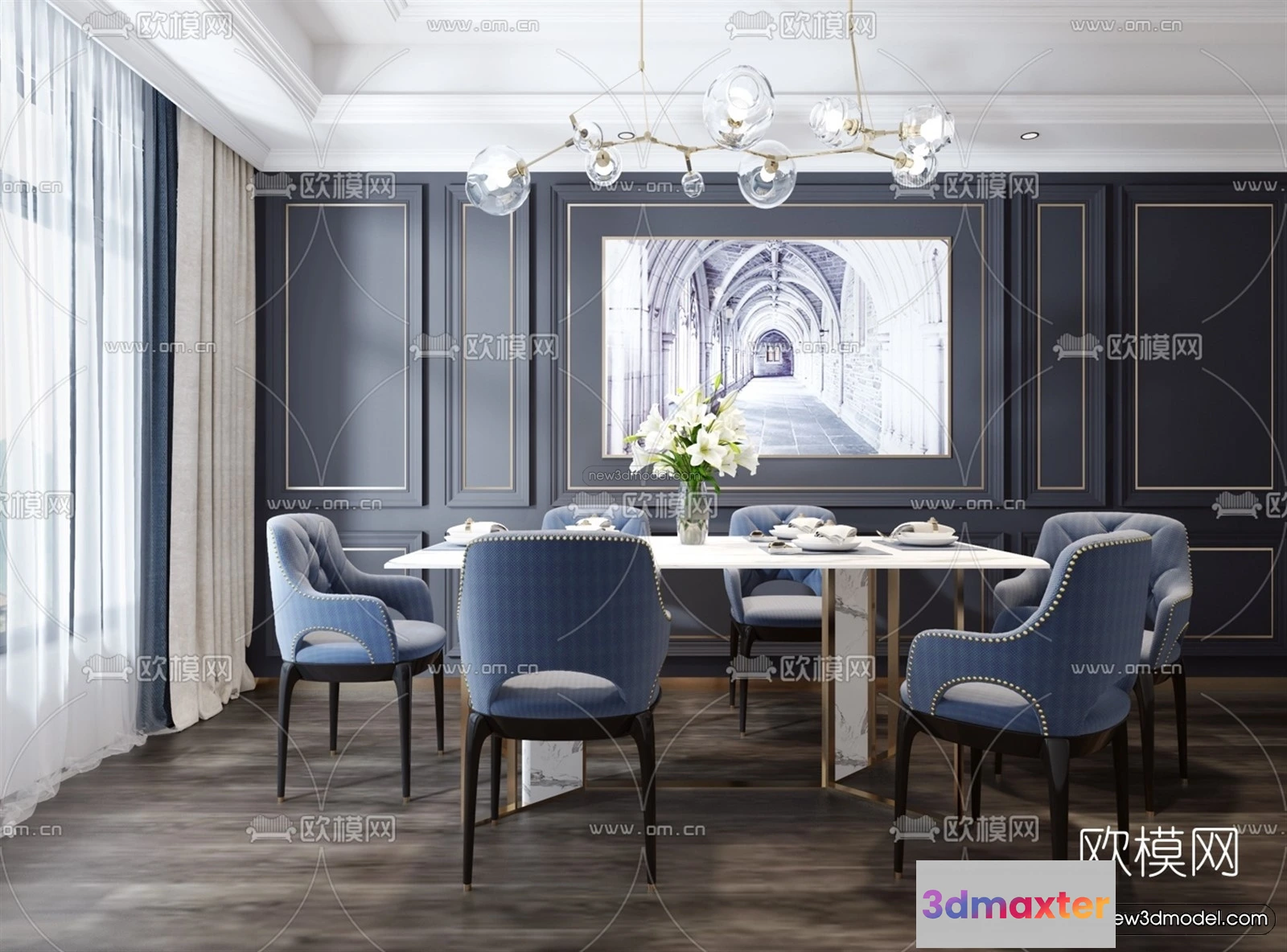 Europe Style Interior 3D Blocks – Dining Room 3D Model – 189 – Dining Room 3D Model – VRAY