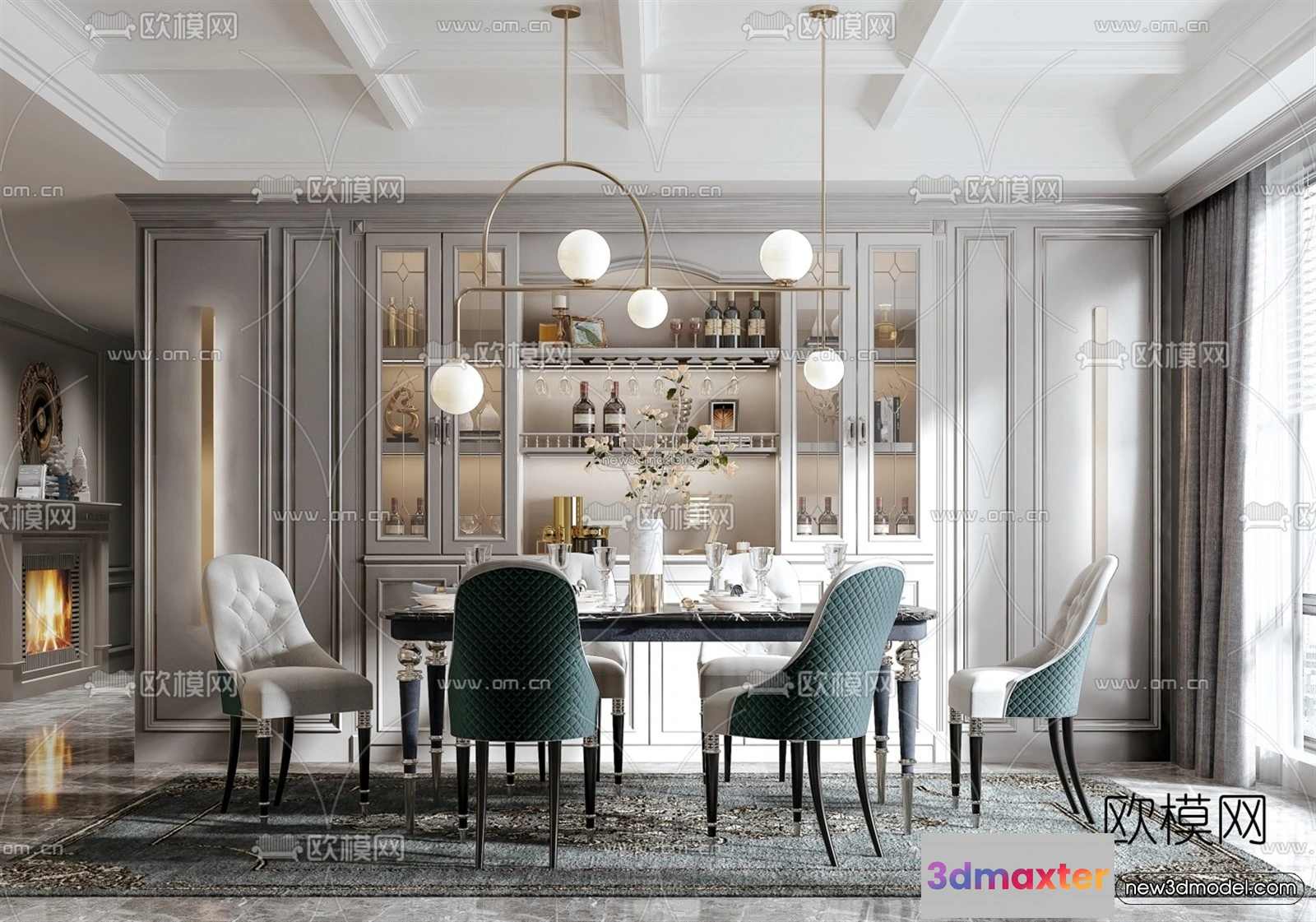 Europe Style Interior 3D Blocks – Dining Room 3D Model – 194 – Dining Room 3D Model – VRAY