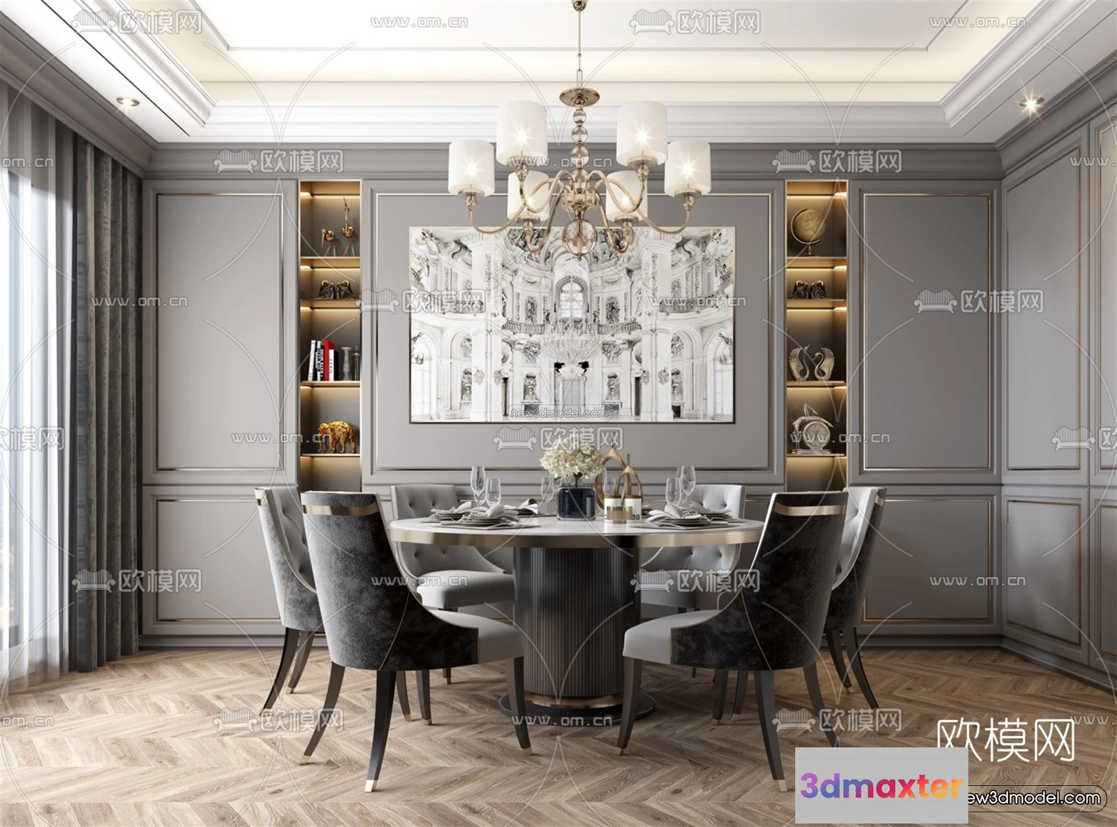 Europe Style Interior 3D Blocks – Dining Room 3D Model – 196 – Dining Room 3D Model – VRAY