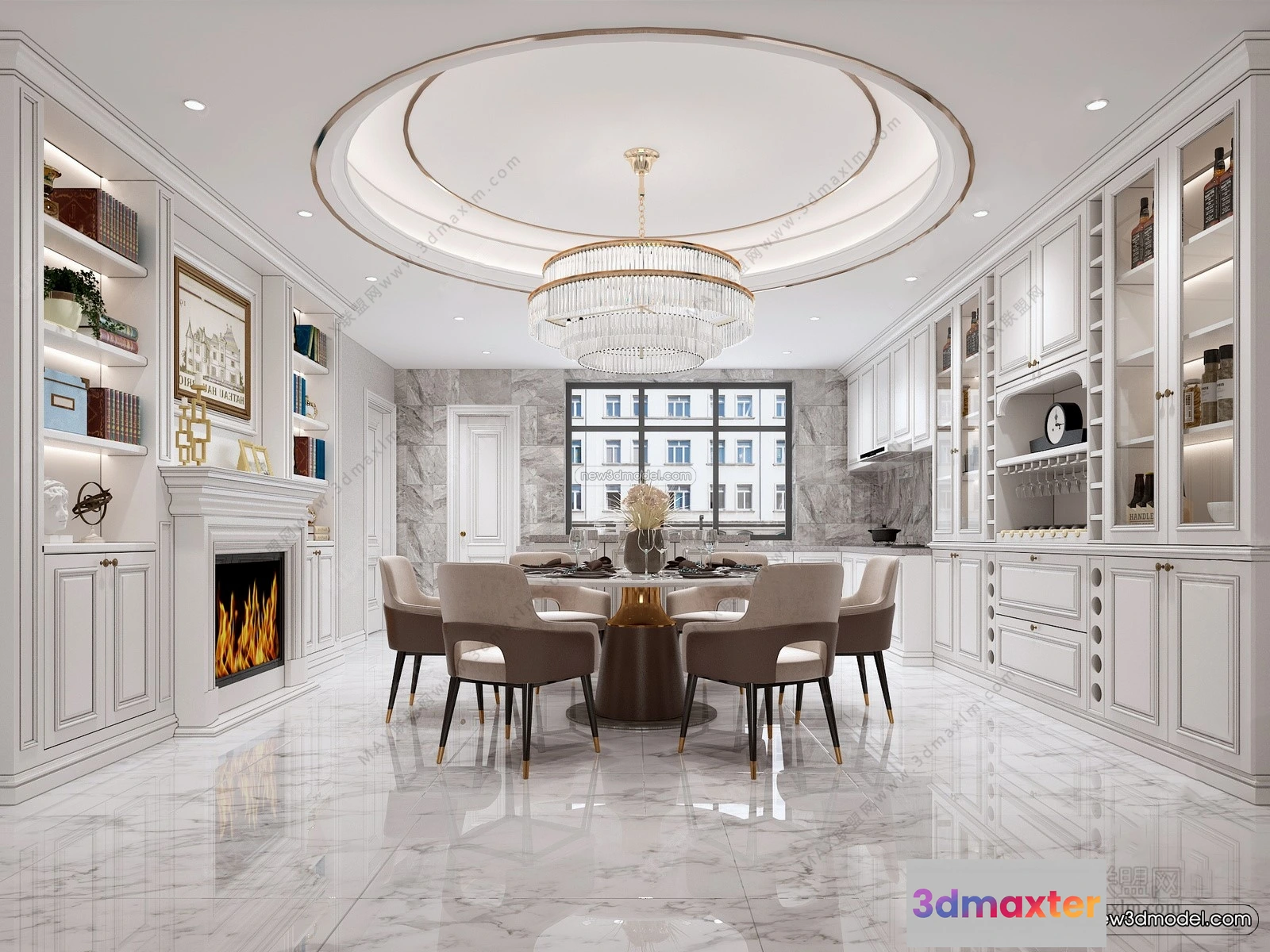 3D Models / 3D Scenes / Interior / Dining Room / Europe Style Interior 3D Blocks – Dining Room 3D Model – 200 3D Max
