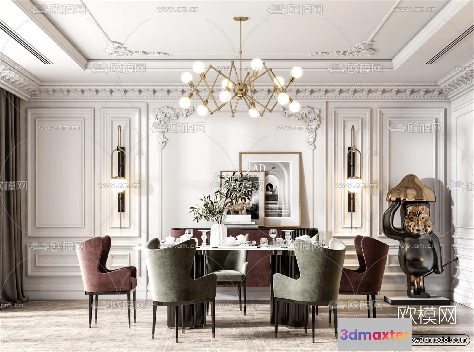 3D Models / 3D Scenes / Interior / Dining Room / Europe Style Interior 3D Blocks – Dining Room 3D Model – 202 3D Max