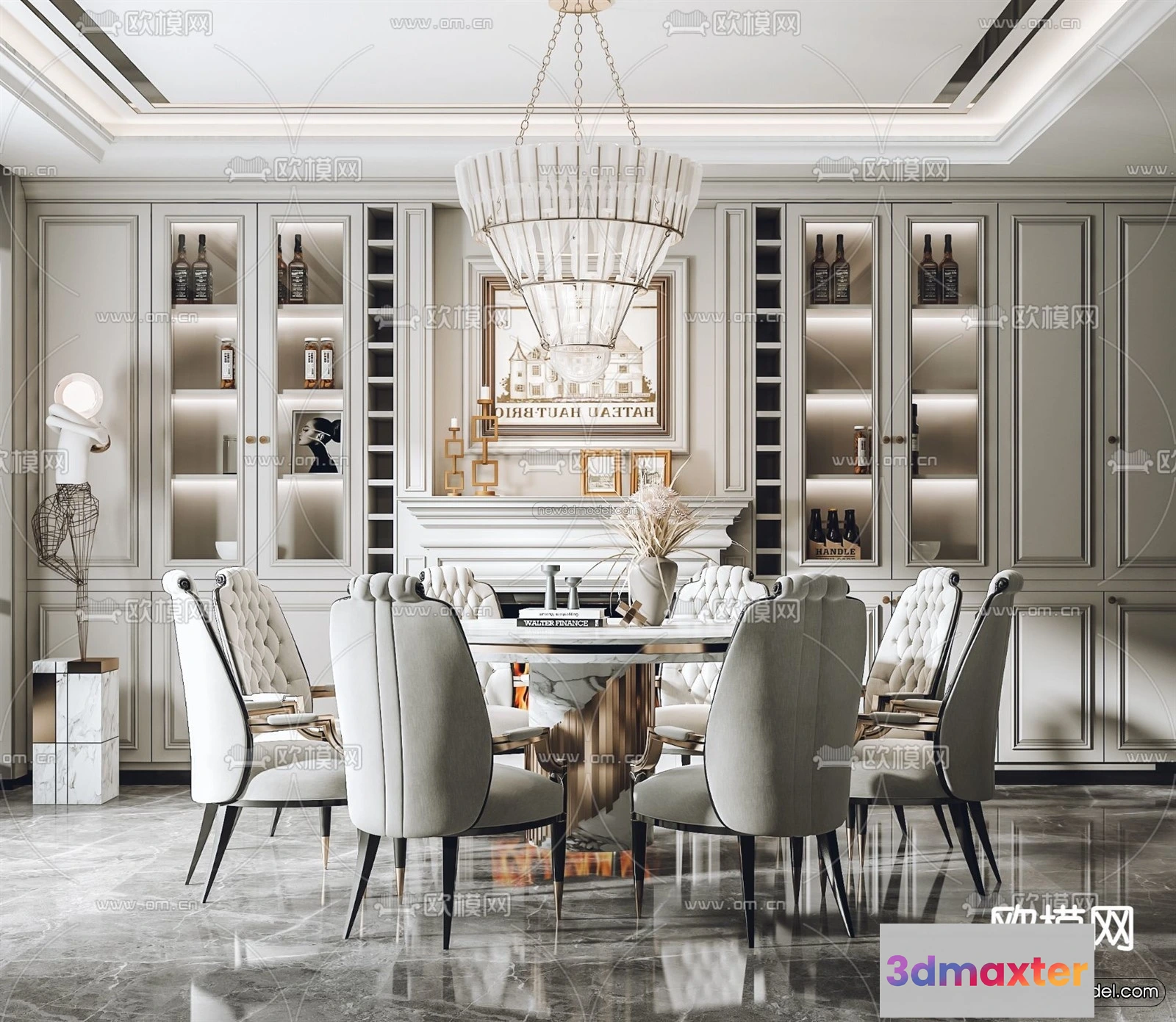 Europe Style Interior 3D Blocks – Dining Room 3D Model – 211 – Dining Room 3D Model – VRAY