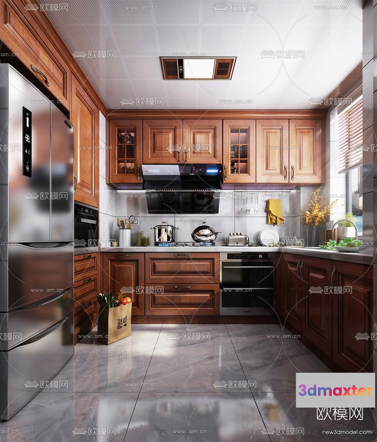 Europe Style Interior 3D Blocks – Kitchen 3D Model – 297 – Kitchen 3D Model – VRAY