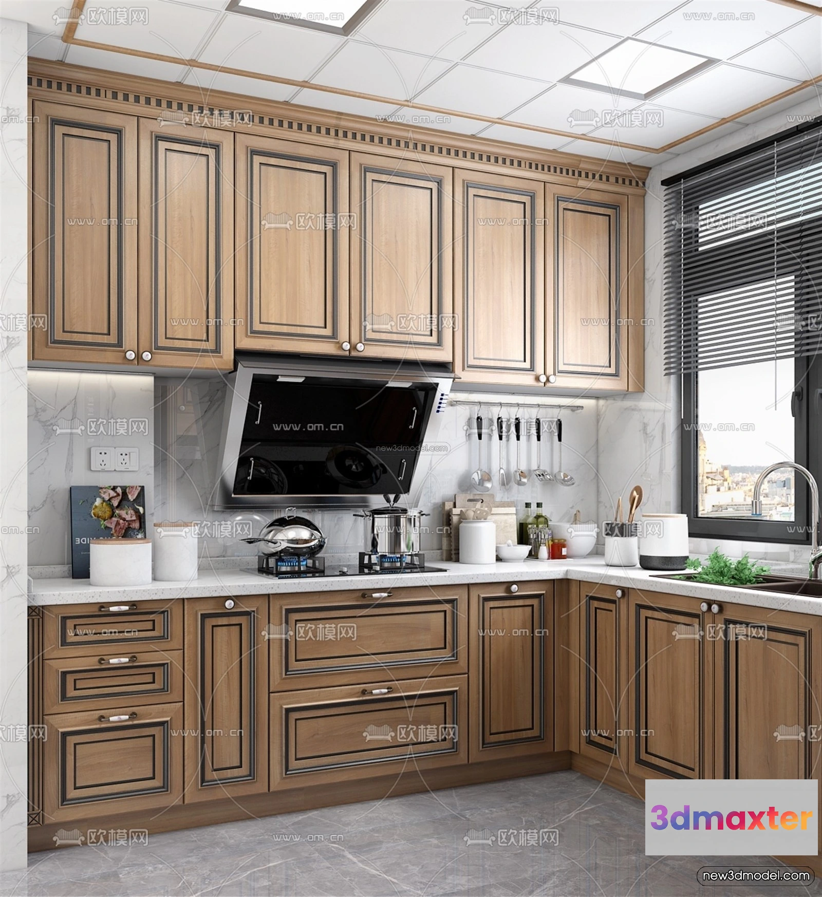 Europe Style Interior 3D Blocks – Kitchen 3D Model – 300 – Kitchen 3D Model – VRAY