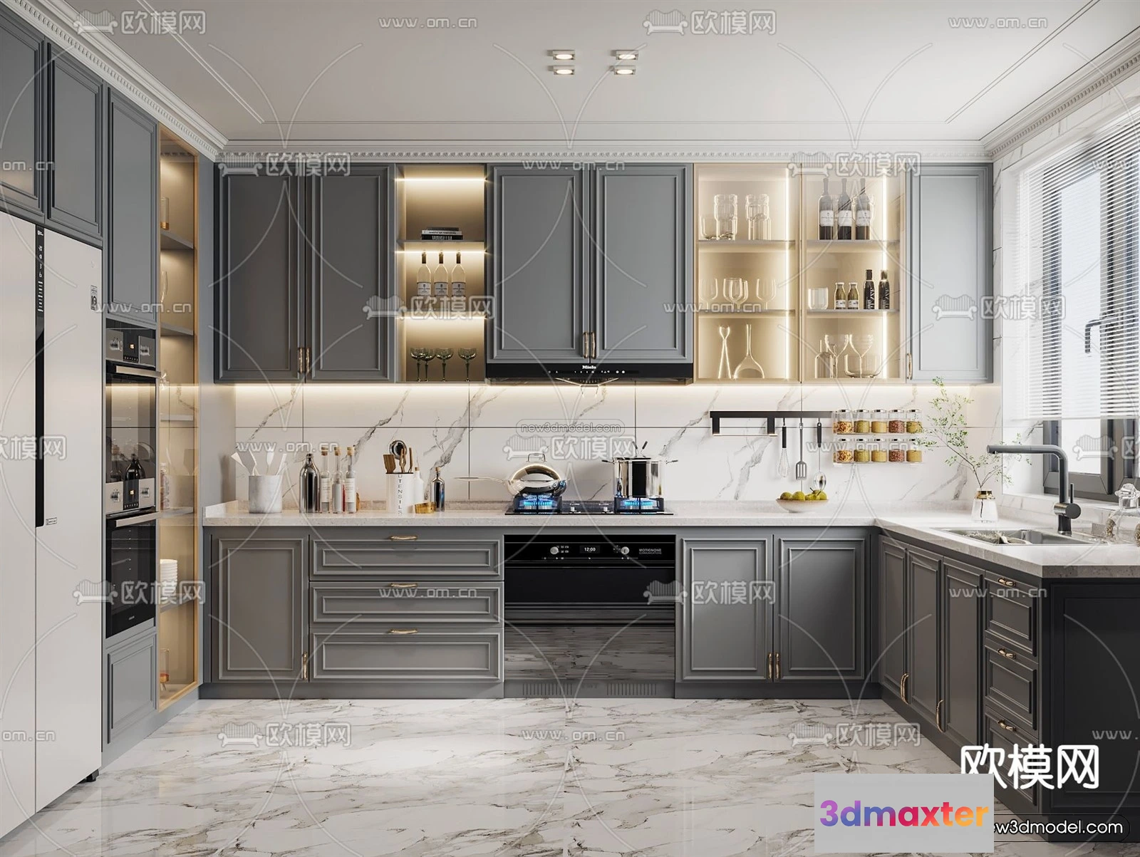 Europe Style Interior 3D Blocks – Kitchen 3D Model – 314 – Kitchen 3D Model – VRAY