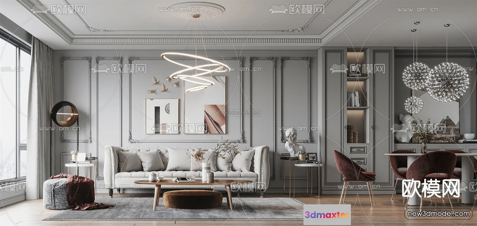 Europe Style Interior 3D Blocks – Living Room 3D Model – 058 – Living room 3D Model – VRAY