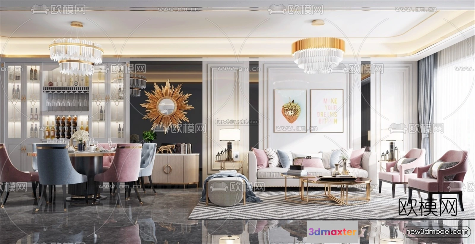 Europe Style Interior 3D Blocks – Living Room 3D Model – 069 – Living room 3D Model – VRAY
