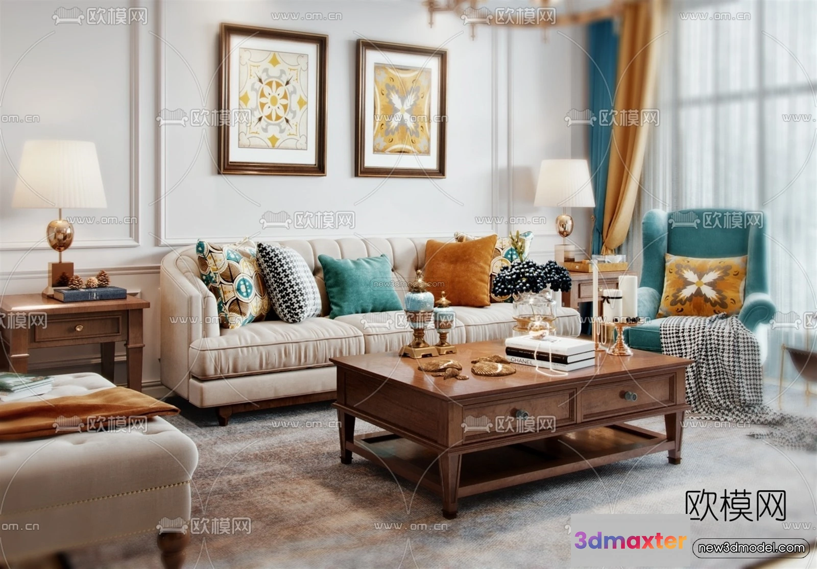 Europe Style Interior 3D Blocks – Living Room 3D Model – 072 – Living room 3D Model – VRAY