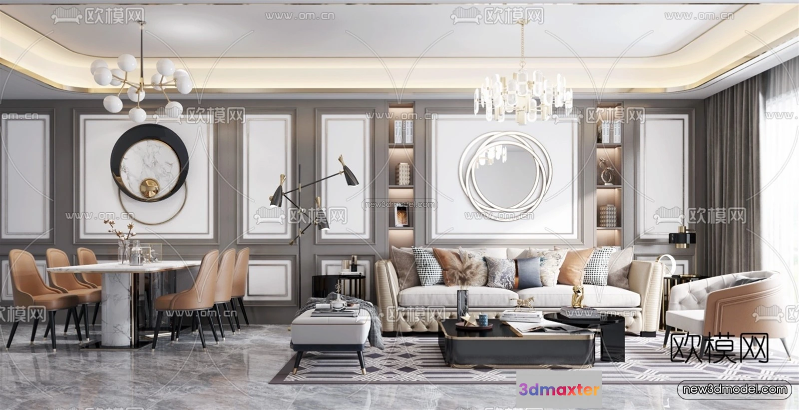 - Name: Europe Style Interior 3D Blocks – Living Room 3D Model – 084