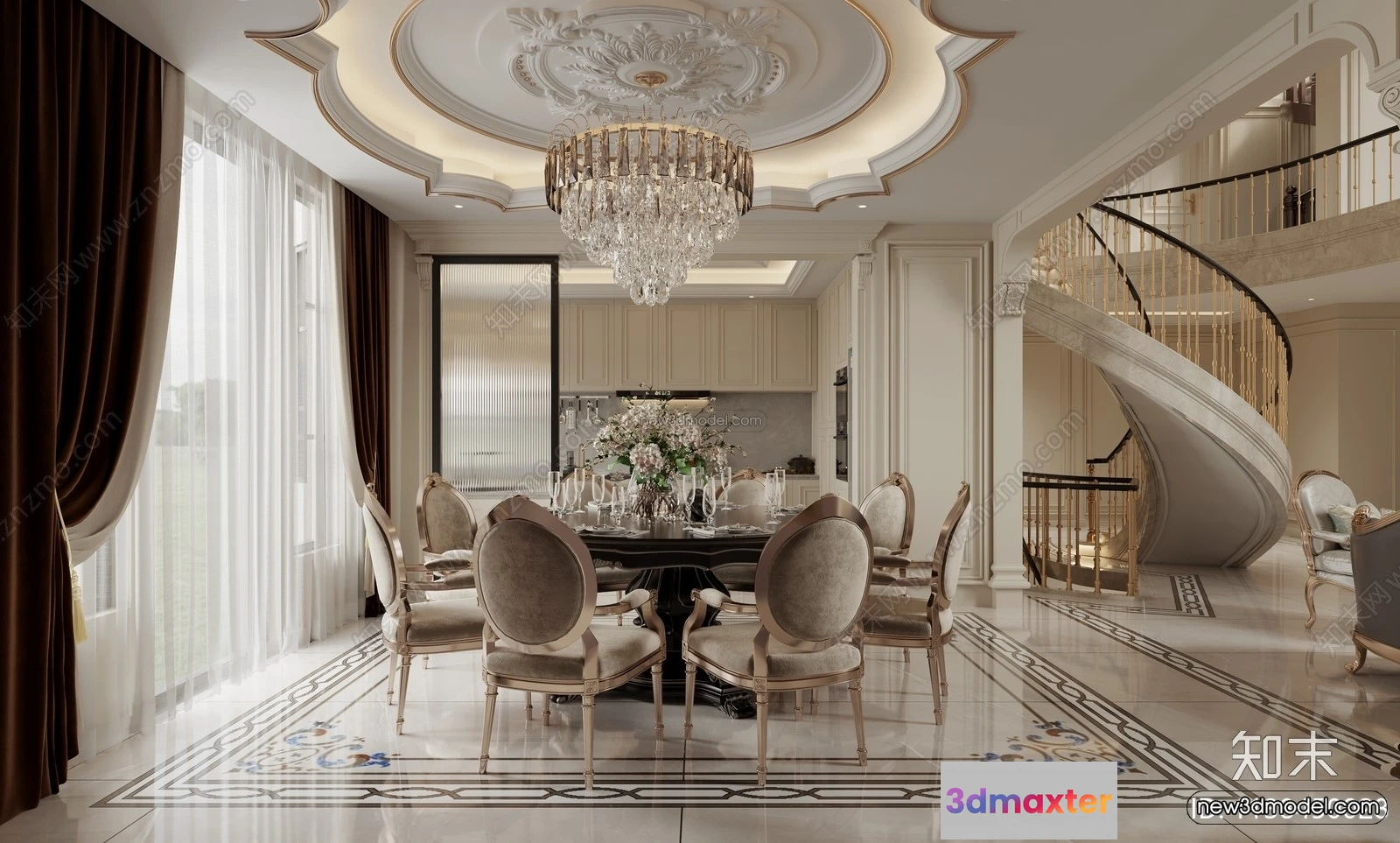 Europe Style Interior 3D Blocks – Living Room 3D Model – 097 – Living room 3D Model – CORONA