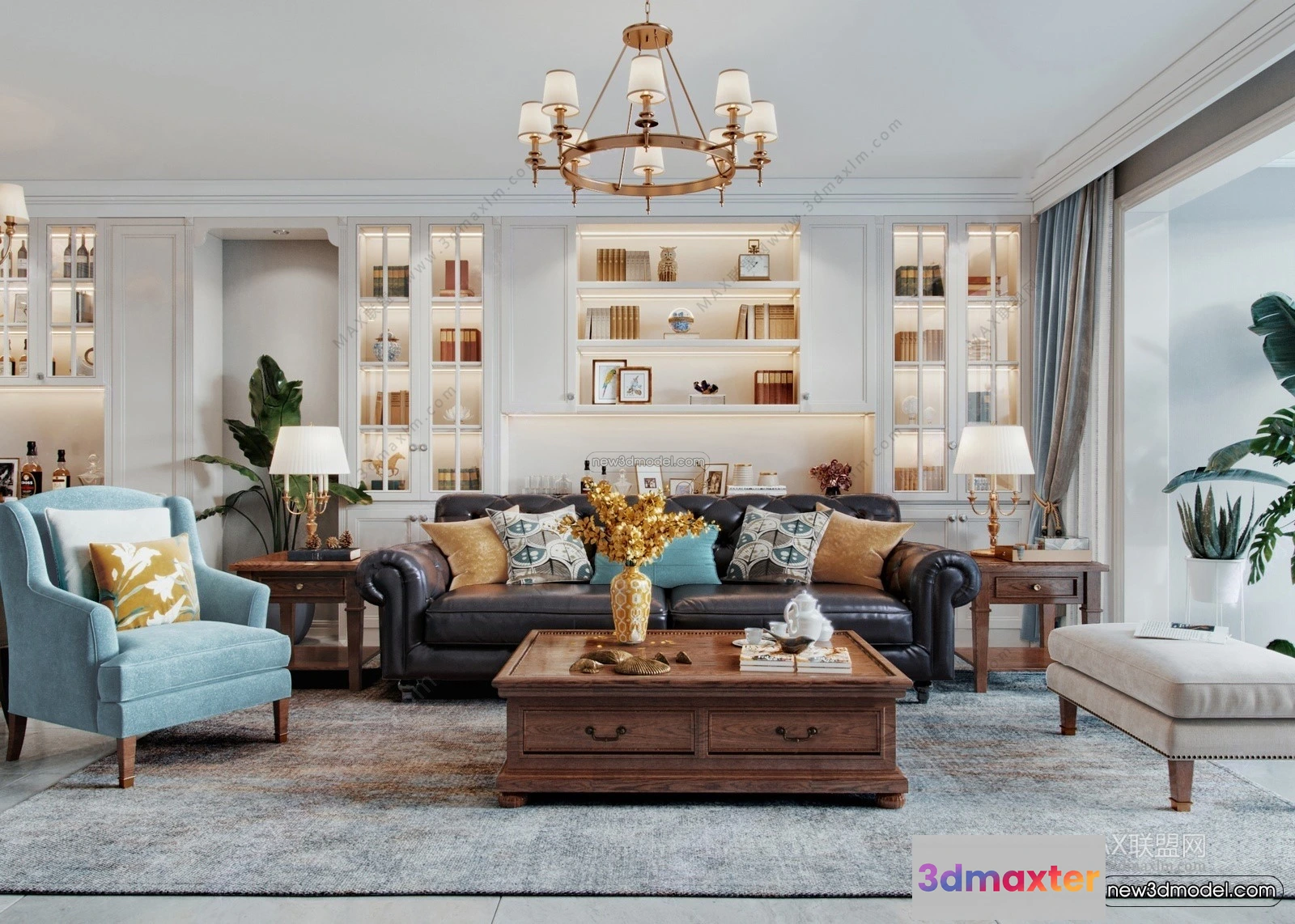 Europe Style Interior 3D Blocks – Living Room 3D Model – 124 – Living room 3D Model – VRAY