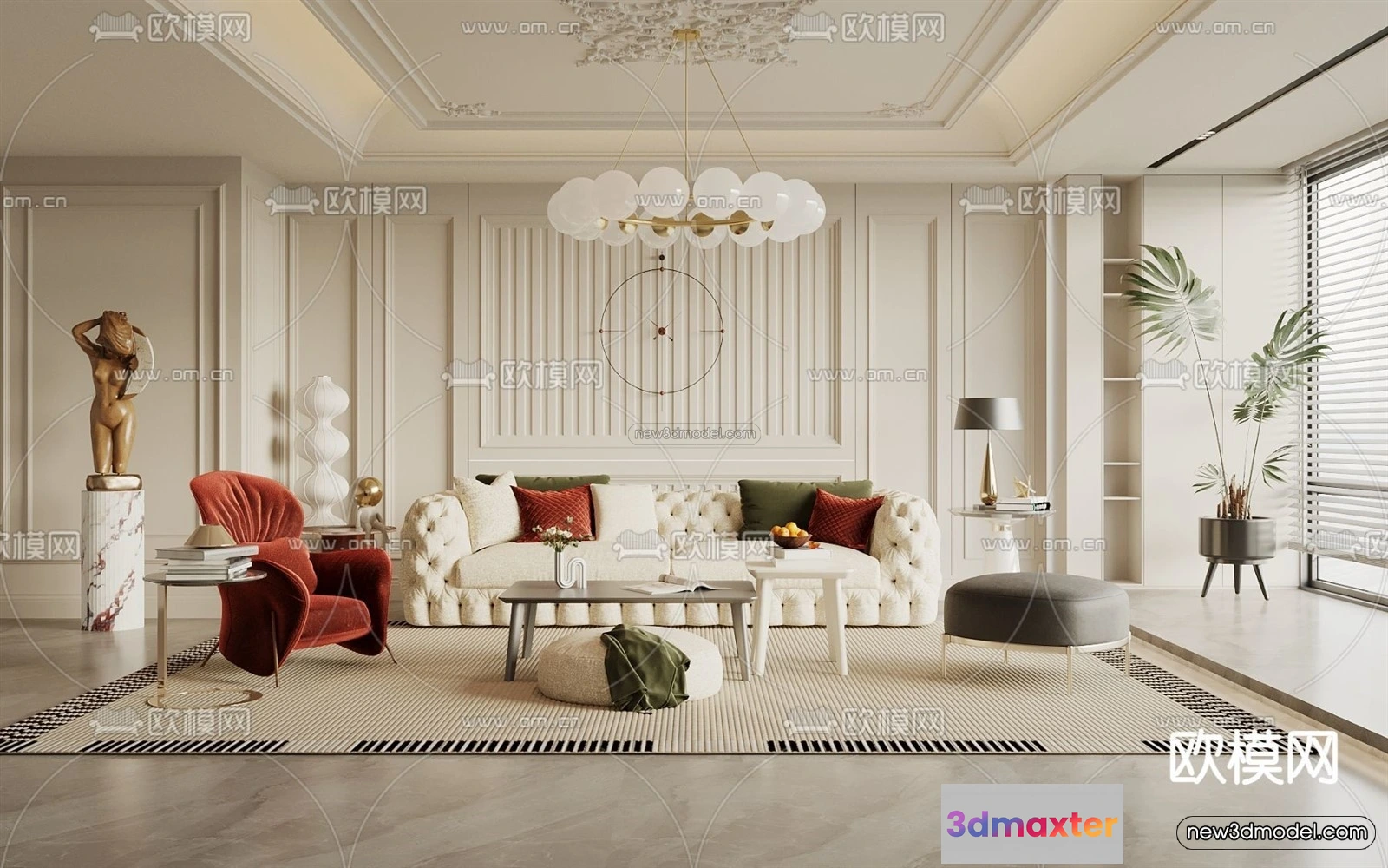 Europe Style Interior 3D Blocks – Living Room 3D Model – 131 – Living room 3D Model – VRAY