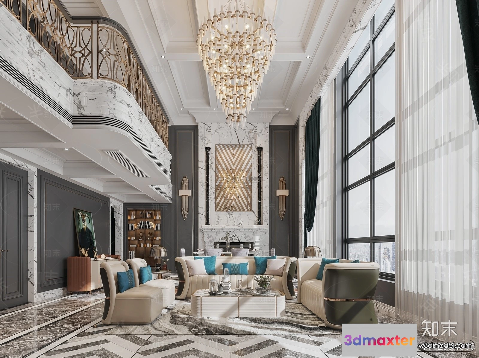Europe Style Interior 3D Blocks – Living Room 3D Model – 132 – Living room 3D Model – CORONA