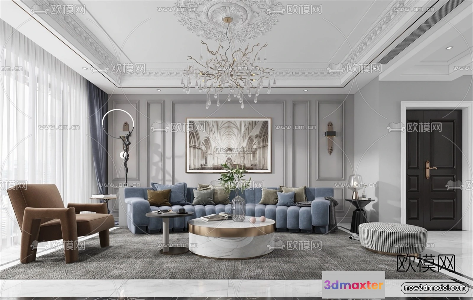 Europe Style Interior 3D Blocks – Living Room 3D Model – 137 – Living room 3D Model – VRAY