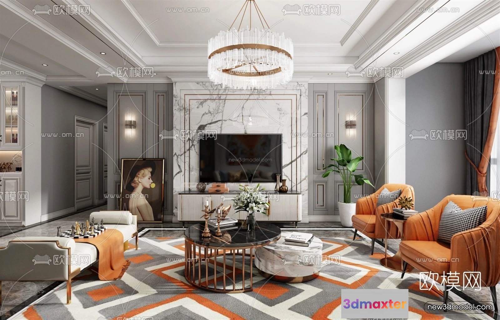 Europe Style Interior 3D Blocks – Living Room 3D Model – 155 – Living room 3D Model – VRAY
