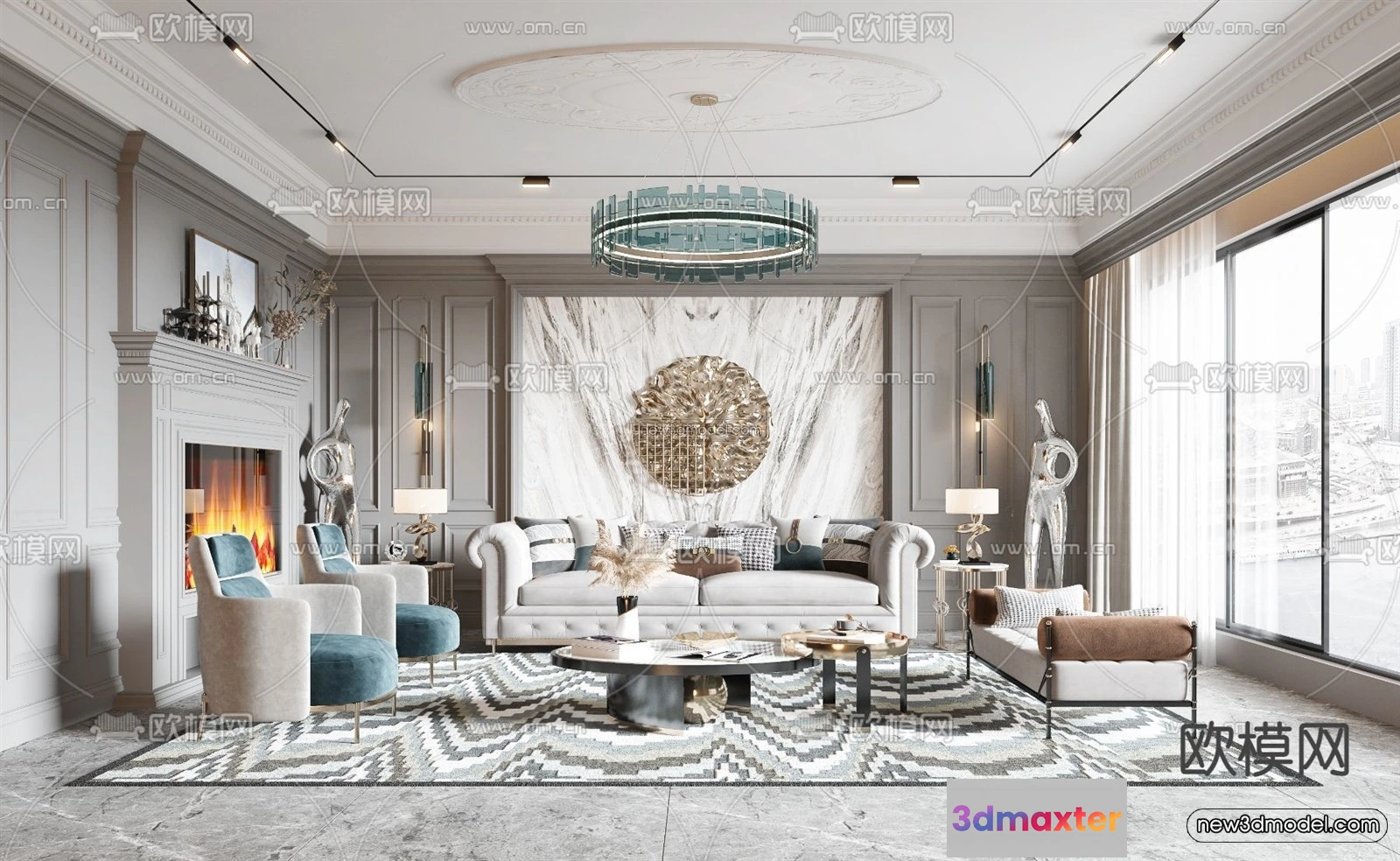 Europe Style Interior 3D Blocks – Living Room 3D Model – 173 – Living room 3D Model – VRAY