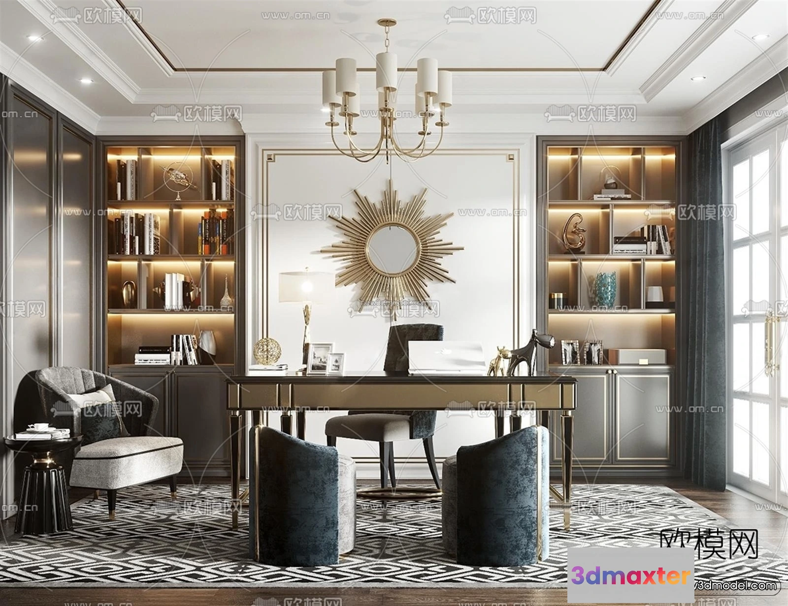 Europe Style Interior 3D Blocks – Study Room 3D Model – 337 – Office Home 3D Model – VRAY